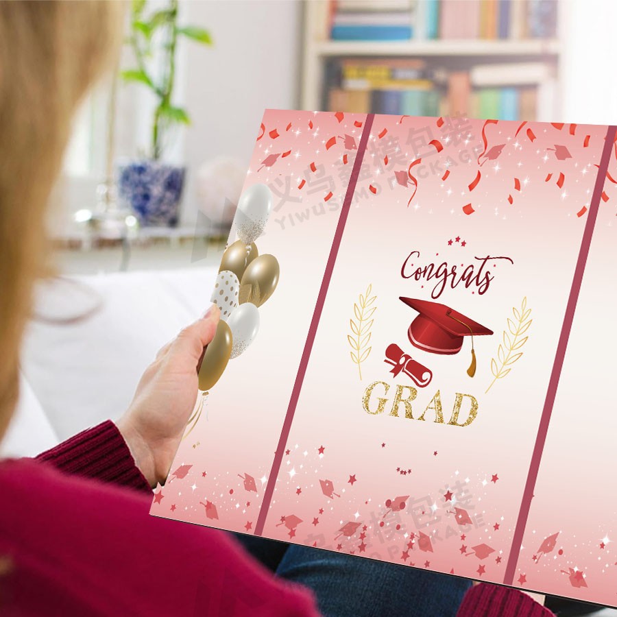 ピンクの箔押しのテーマパーティー大学生卒業式グリーティングカード
