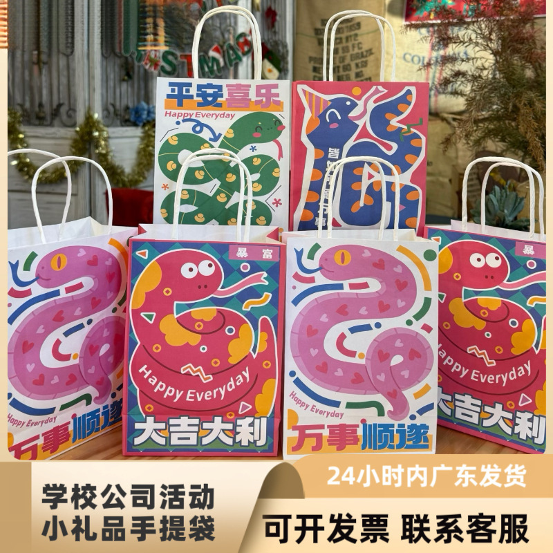 新年小さなプレゼントギフトバッグミルクティーコーヒーポット蛇年包装バッグ誕生日高級手提げ袋クラフト紙袋広東