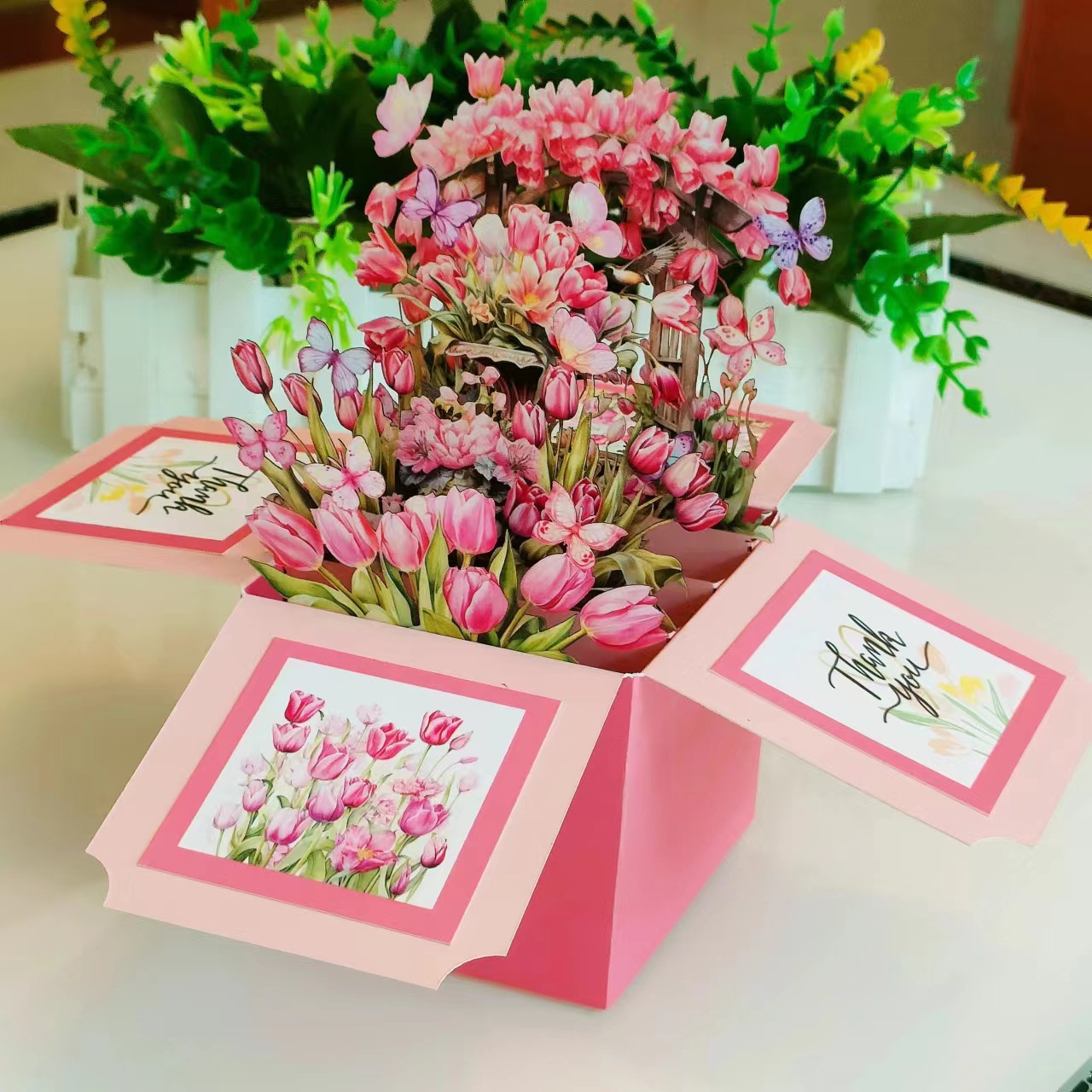 2024年新作チューリップ蝶立体箱3d立体創意制作立体箱ピンク紙可