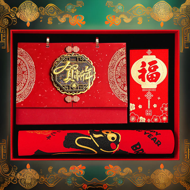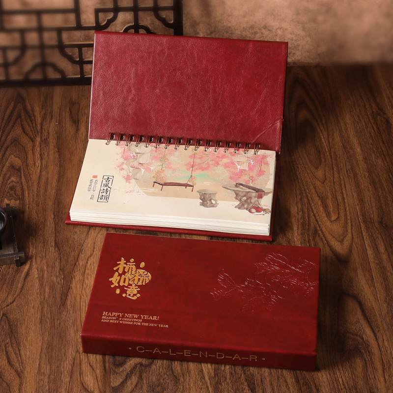 2025年新年中国風卓上カレンダー対聯ギフトボックスセット大赤色対聯紅包カレンダー会社企業ロゴ