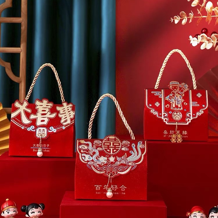 喜糖箱結婚用高級感中国式創意小紅書同金手提げギフトボックス結婚式お返し包装空箱