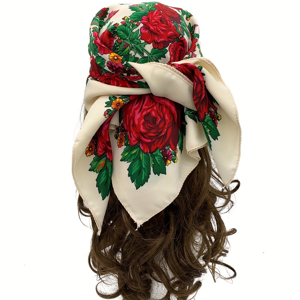 ボヘミアン スタイル ロシアン フラワー プリント スクエア スカーフ 27.56 クロスボーダー