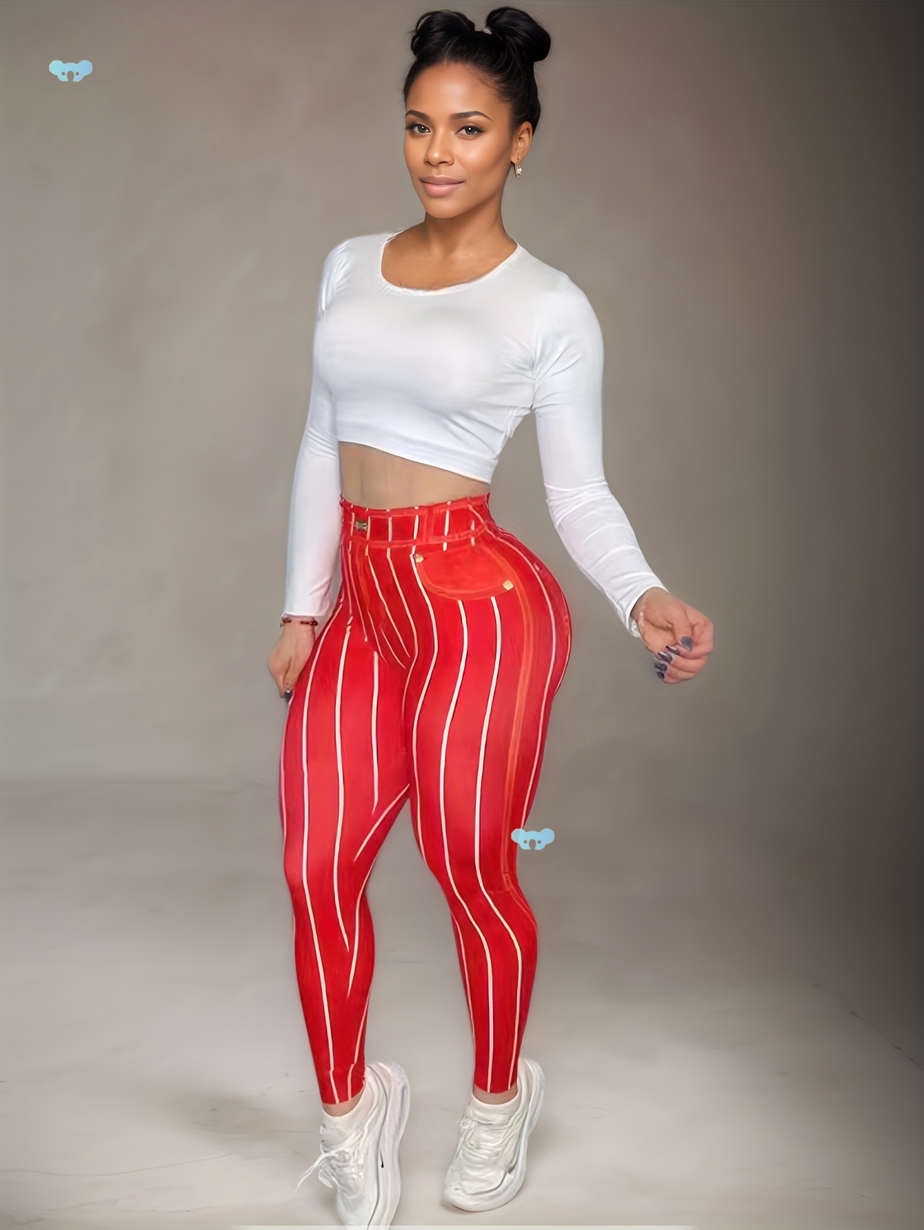 ハイウエストセクシーイミテーションデニムラインプリントヨガパンツクロスボーダー