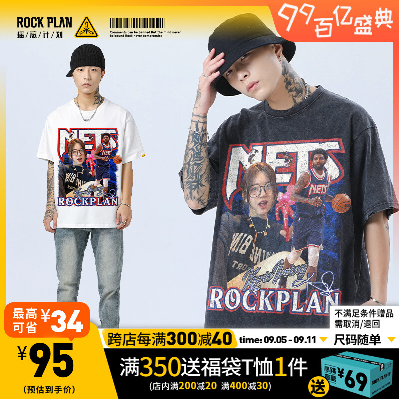200g生地綿Tユーロロック計画アメリカプリント欧文 & 趙露思高街復古短