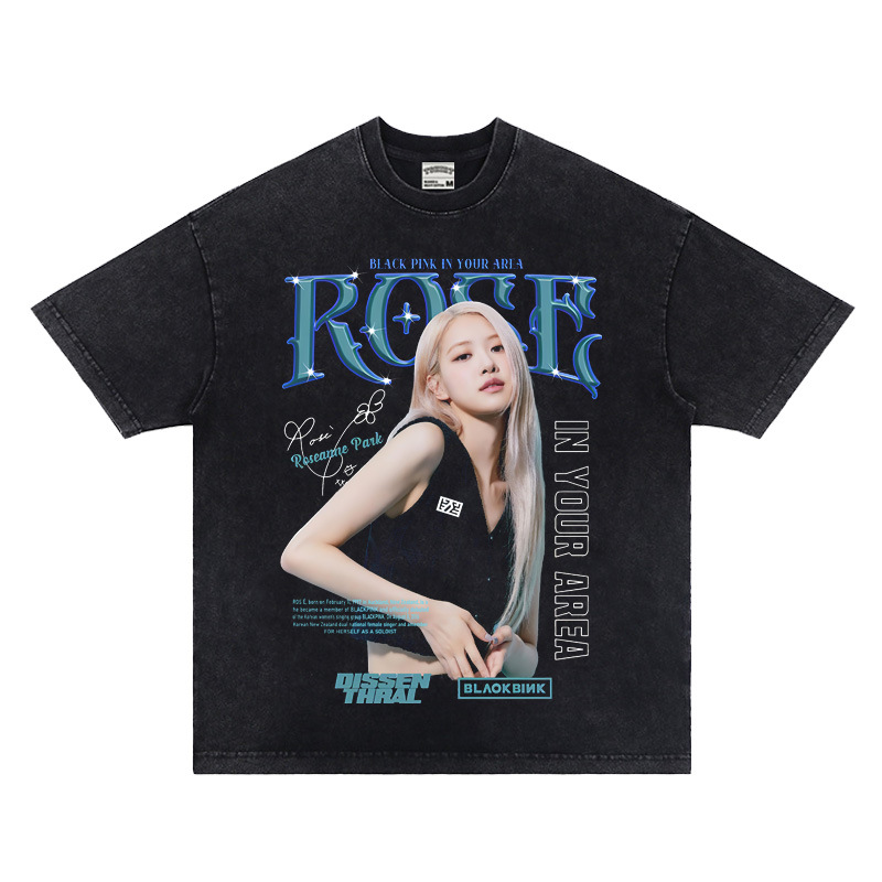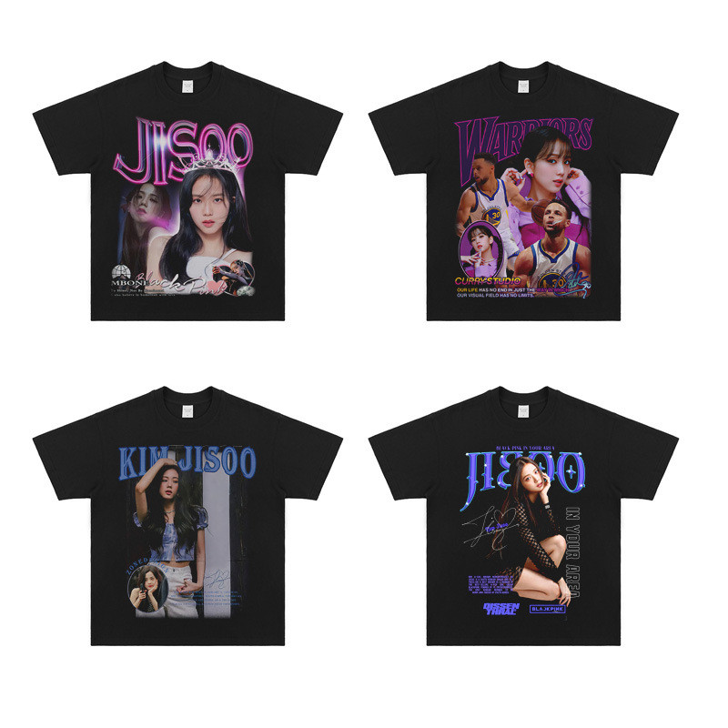 200g生地綿T欧コード金智秀プリント半袖ゆるい高街tシャツjisoo美
