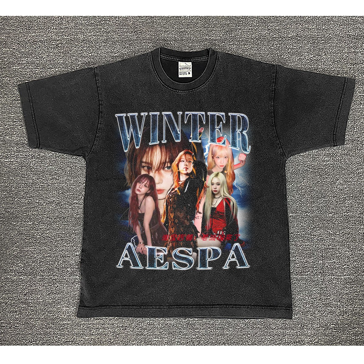 200g生地綿Tユーロコードaespa女性団wintering韓国女優アメリカ式小襟元重ポンド