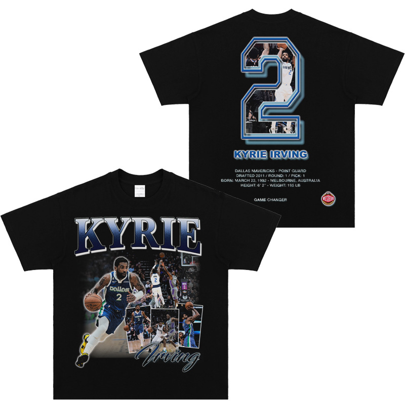 200g生地綿TユーロオリジナルkyrieIrving欧文アメリカレトロプリント重ポンド純