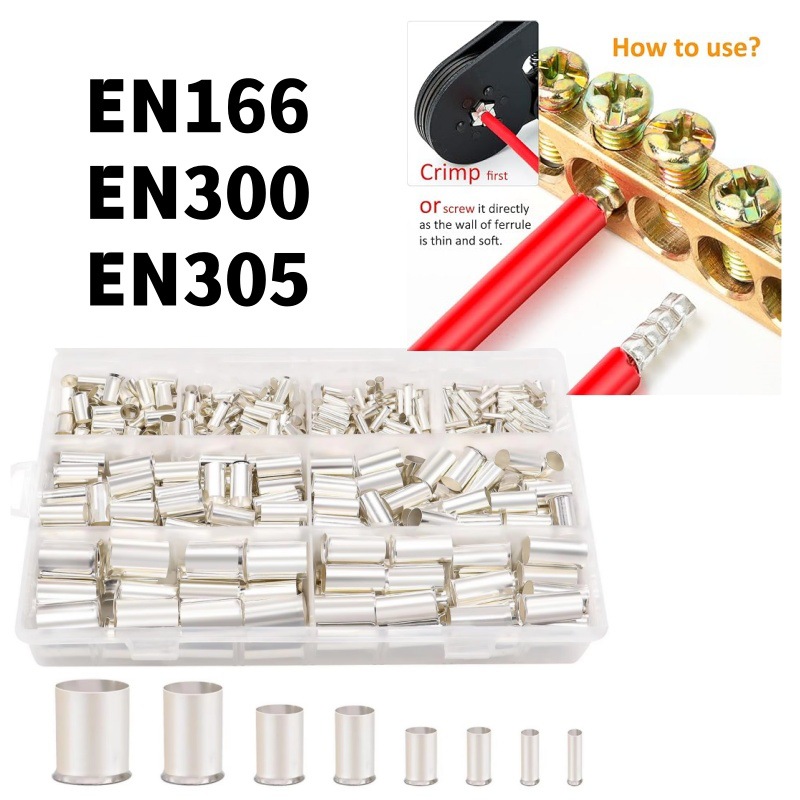 クロスボーダーEN166/300/305pcsボックスチューブ型裸端子セット圧線溶接裸中接収