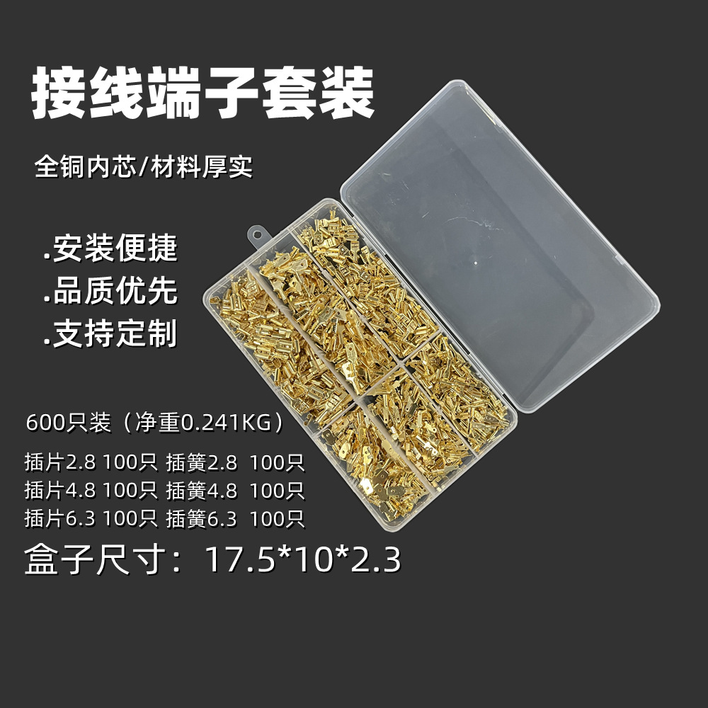 国境を越えて直接600個のボックスセットのクイックジョイントのピンを接続します。銅突合せ2.8/4.8/6.3