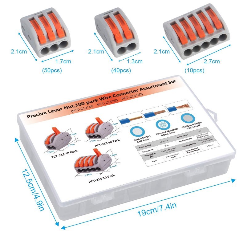 25箱入り電線コネクタ対継手並列ケーブル分割器pct-222/223混合
