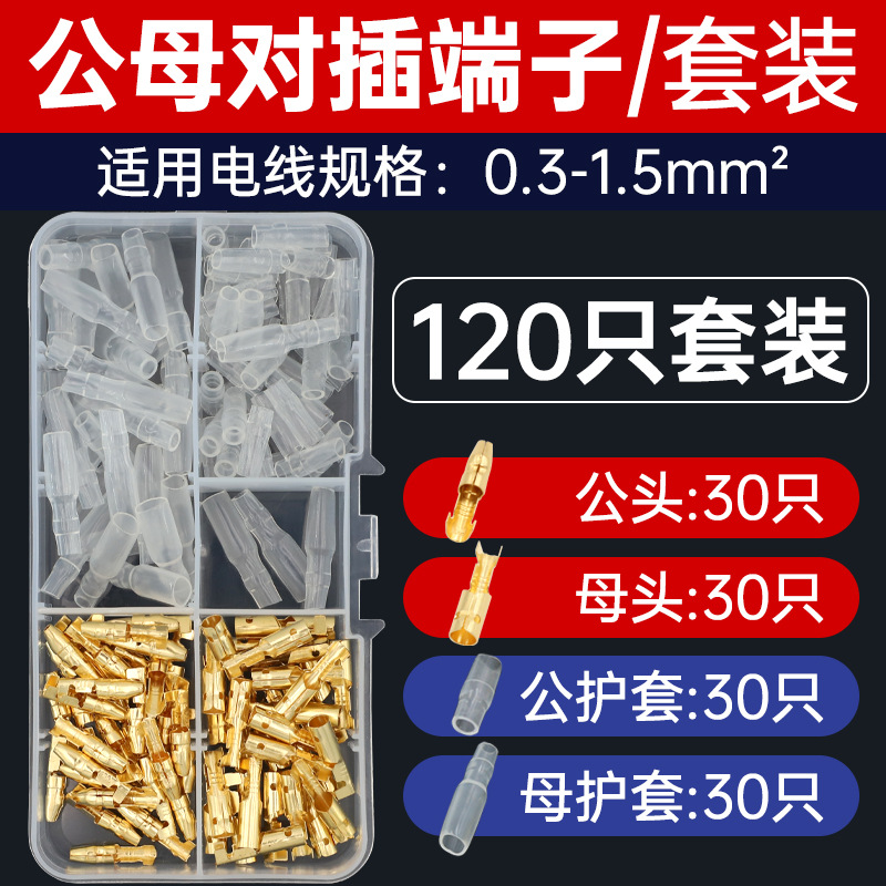 クロスボーダー120pcsケース3.5mm接続端子絶縁カバー付きオス端子とメス端子各60個