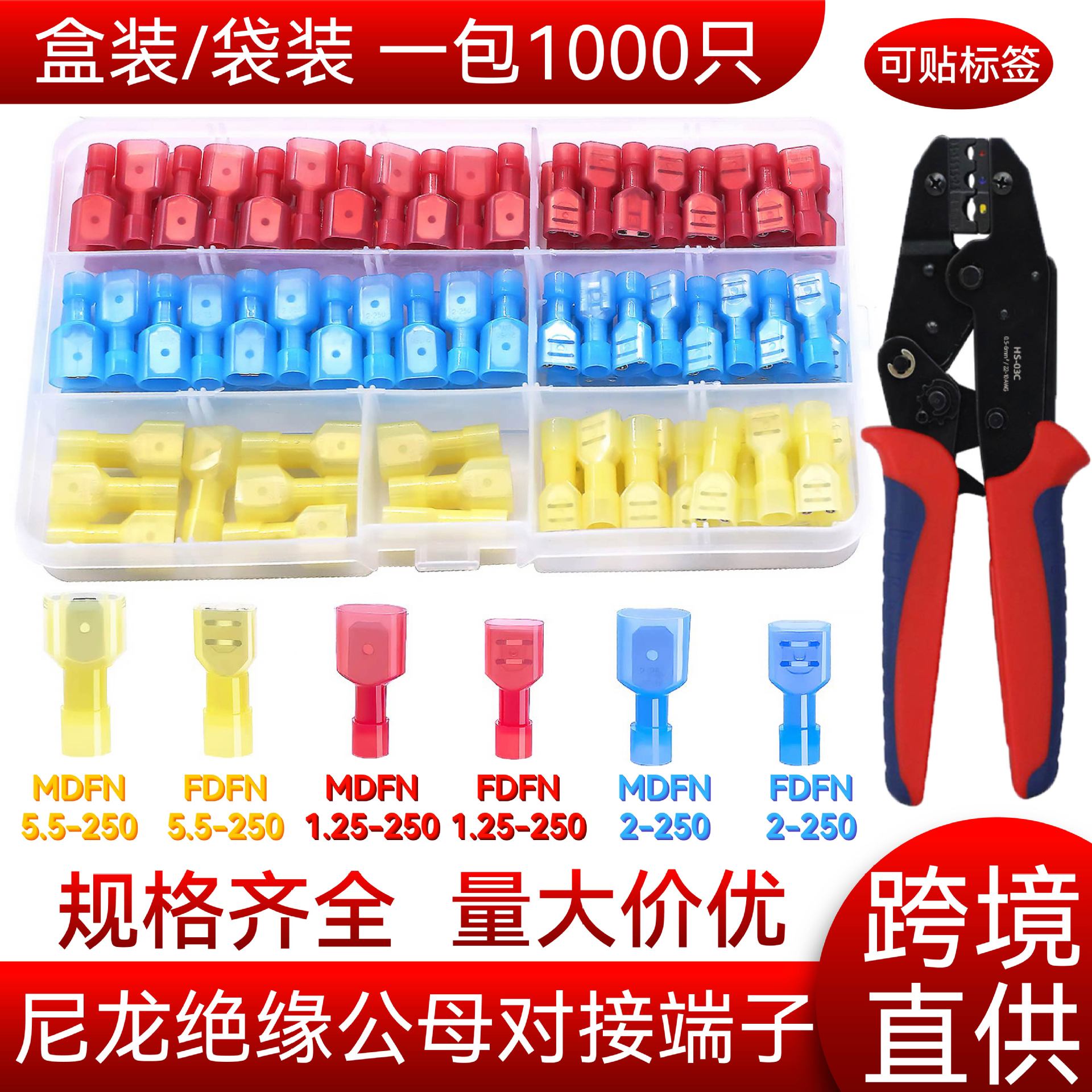 FDFN/mdfn 1.25/2/5.5-250ナイロンリードメス突合せプレ絶縁冷間圧着端子