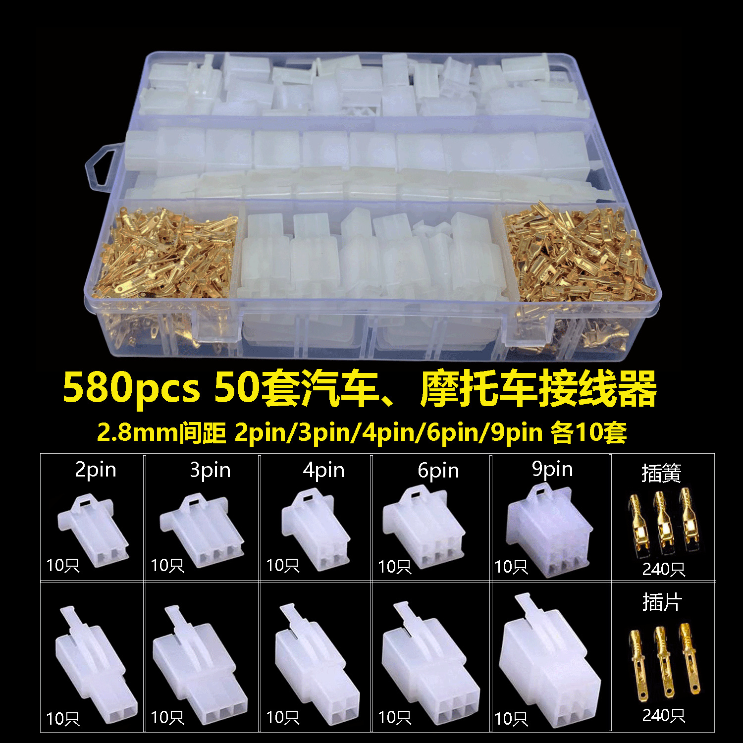 クロスボーダー版580個2.8mm 2p 4p p 6pオートバイの線路針式接続線のオスとメスの端子のセット