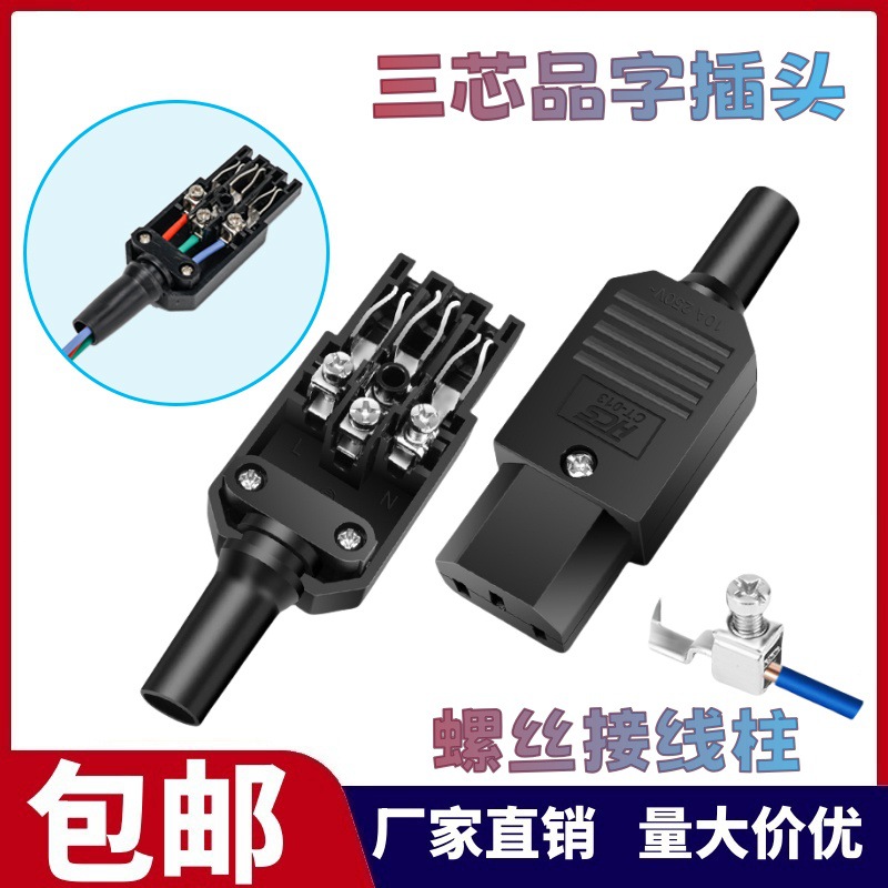 工場直販 10Aピンプラグ 3芯電源コード 250Vネジ端子 オス・メスバット 3垂直ポート
