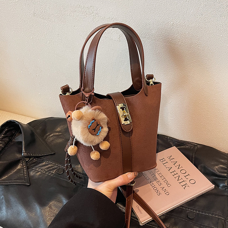 韓国版ファッション通勤手提げバケツバッグ女性2024冬の新型シンプルなショルダーバッグ
