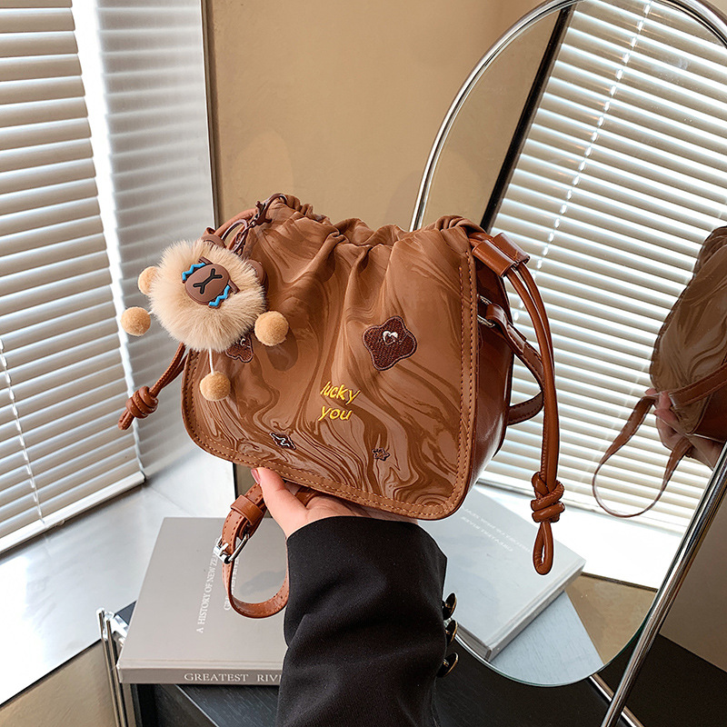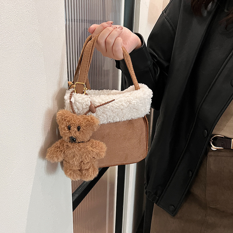 2024韓国版秋冬新作ぬいぐるみ熊可愛いシングル肩斜めショルダーバッグ