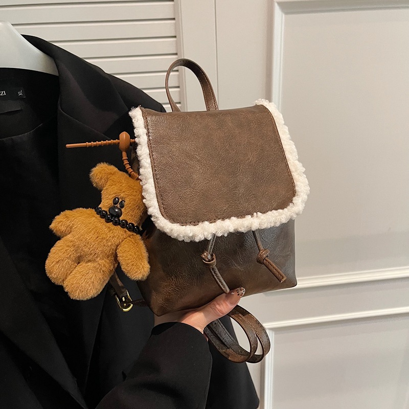レトロなランドセルバッグの女性2024冬の新しいファッションハンドバッグ学生の授業の小さなデザインのバックパック