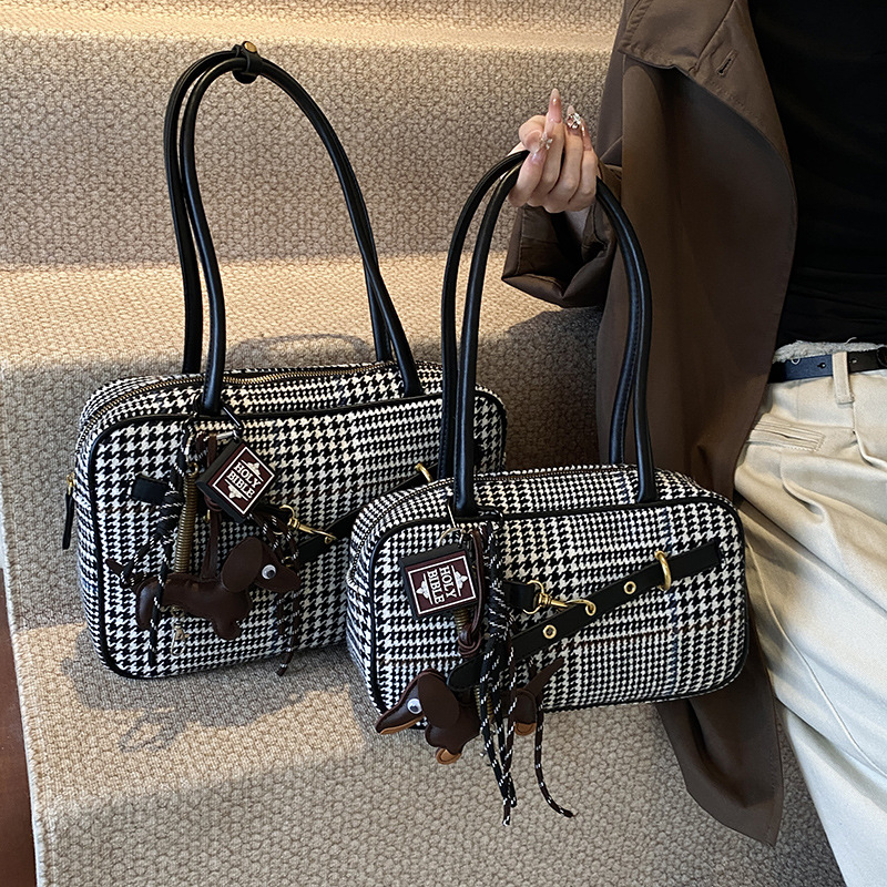 ボーリングの大容量バッグの女性2024の新しい秋冬のファッションは、シングルバッグの通勤ラシャの小さなバッグに合わせています