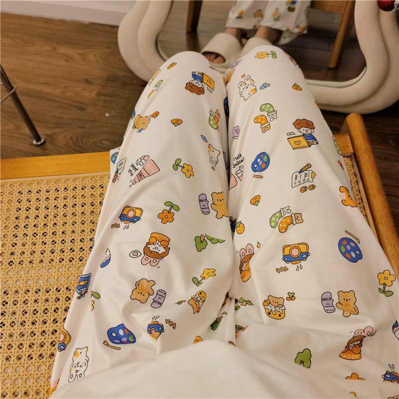 散歩して曲がったズボンの漫画の熊の春秋の韓国版の寝ているズボンの女性のゆったりしているレジャーの夏の家のレジャーのズボンは外に着ることができます。