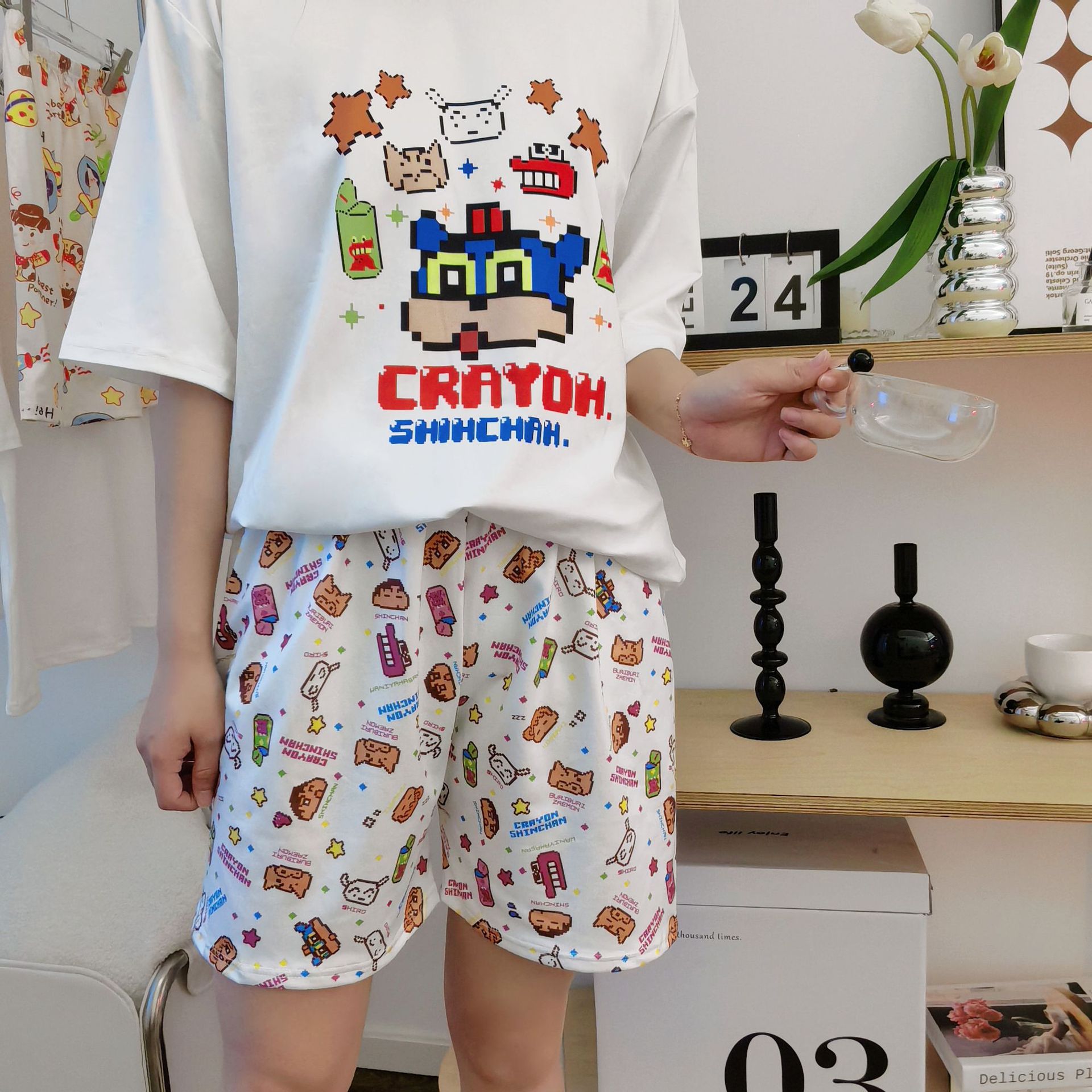 ネットの赤いパジャマの女性insの新商品のアニメのかわいい2つのセットのゆったりした夏の半袖の半ズボンのカジュアルな部屋の服