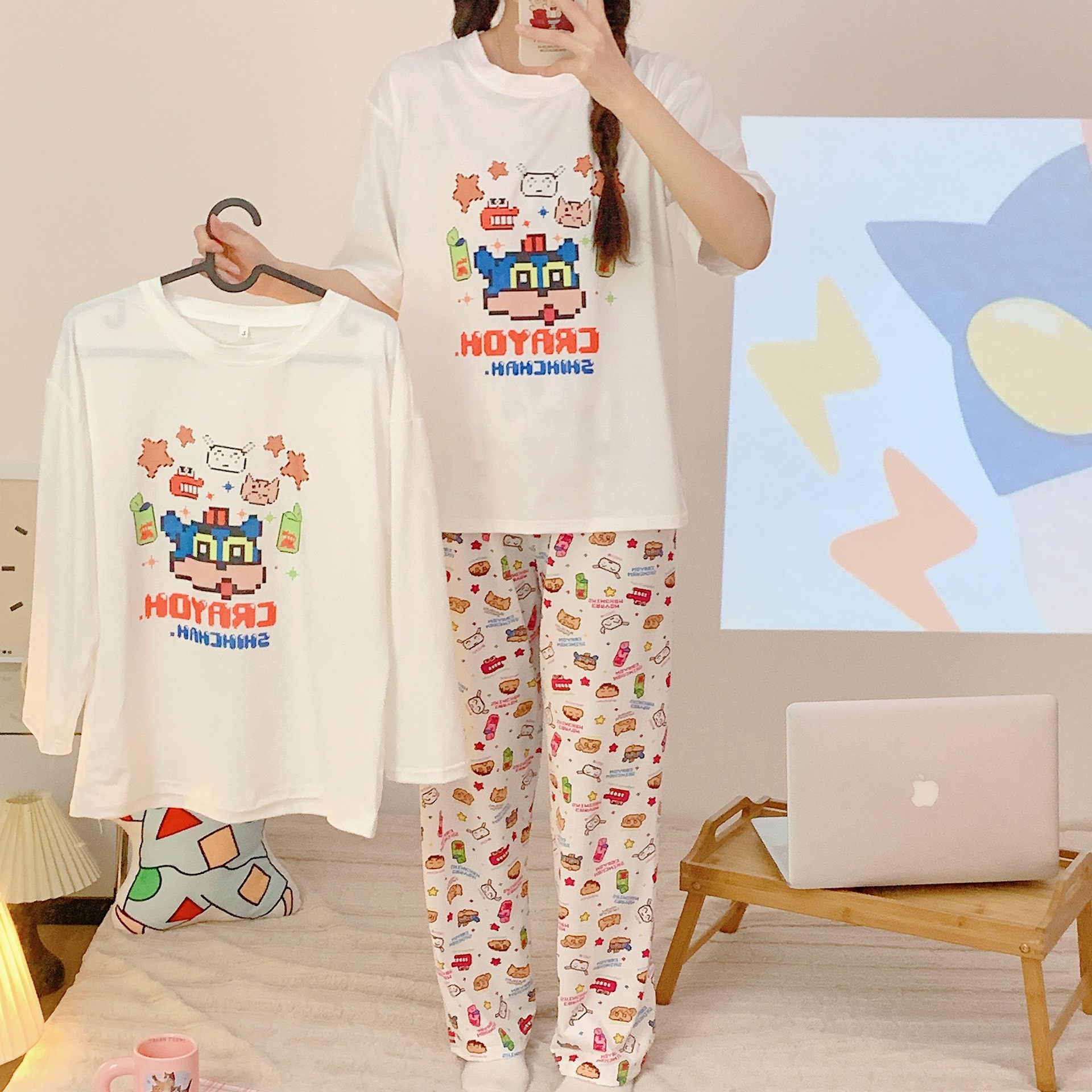 パジャマの女性3点セット春秋夏ゆるいネットレッドins漫画しんちゃん韓国版ロング半袖カジュアルホームウェア