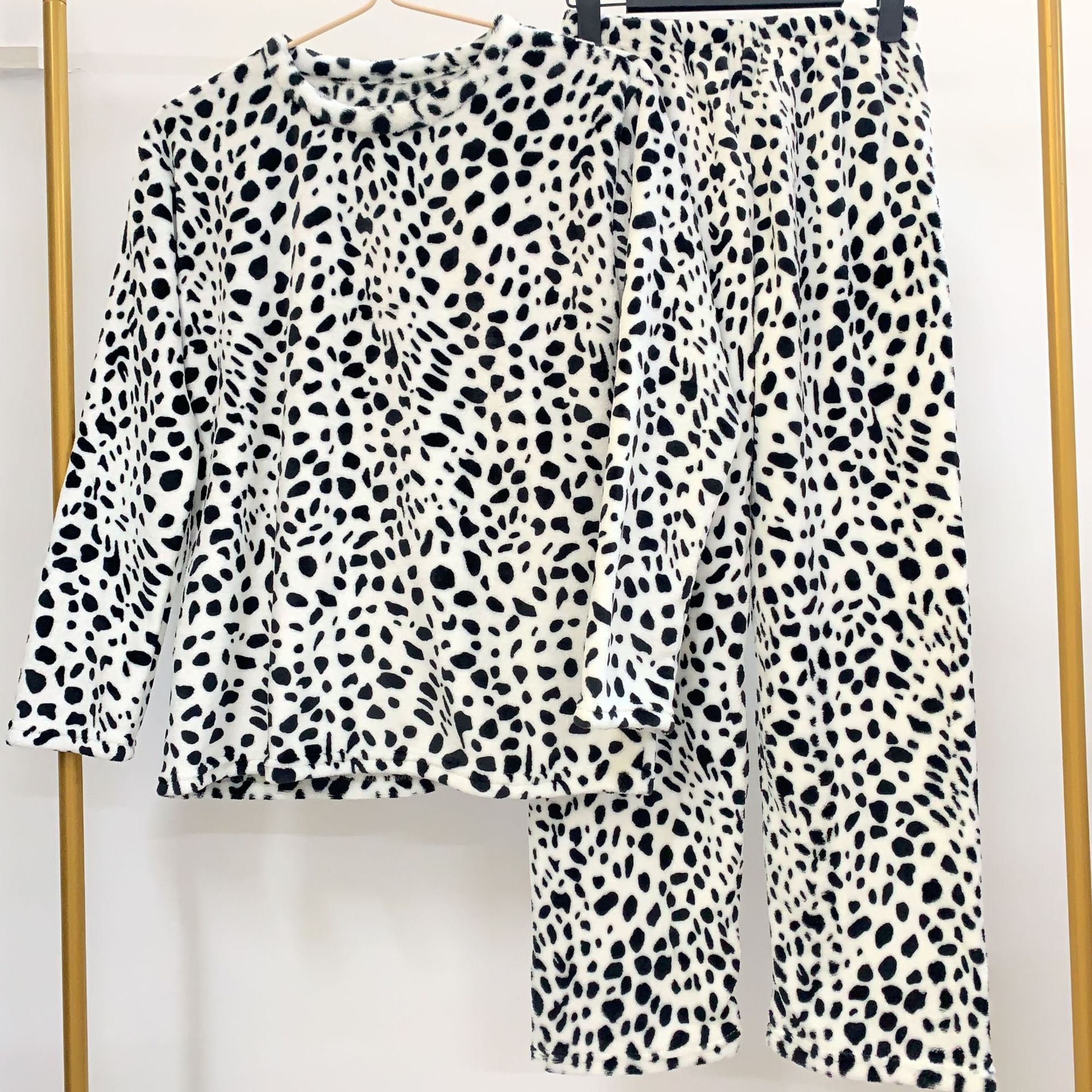 フランネルのパジャマの女性の漫画のヒョウの紋様の韓国版の秋冬のサンゴの絨毯は厚くて暖かいレジャーの家のスーツを厚くします。