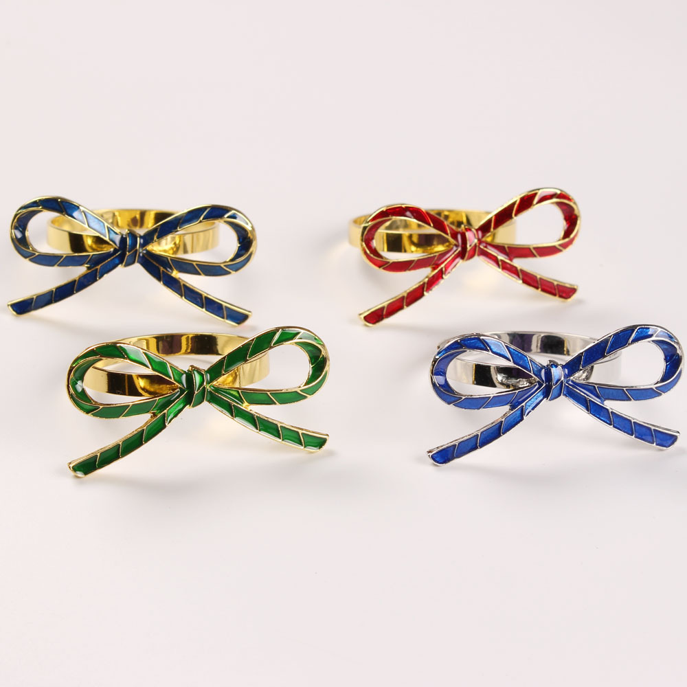 国境を越えたクリスマスのアイデア麻のお下げの蝶結びのナプキンリングホテルのサンプルプレートの間の食器の置物の電気めっきの食事は卸売りを掛けます。