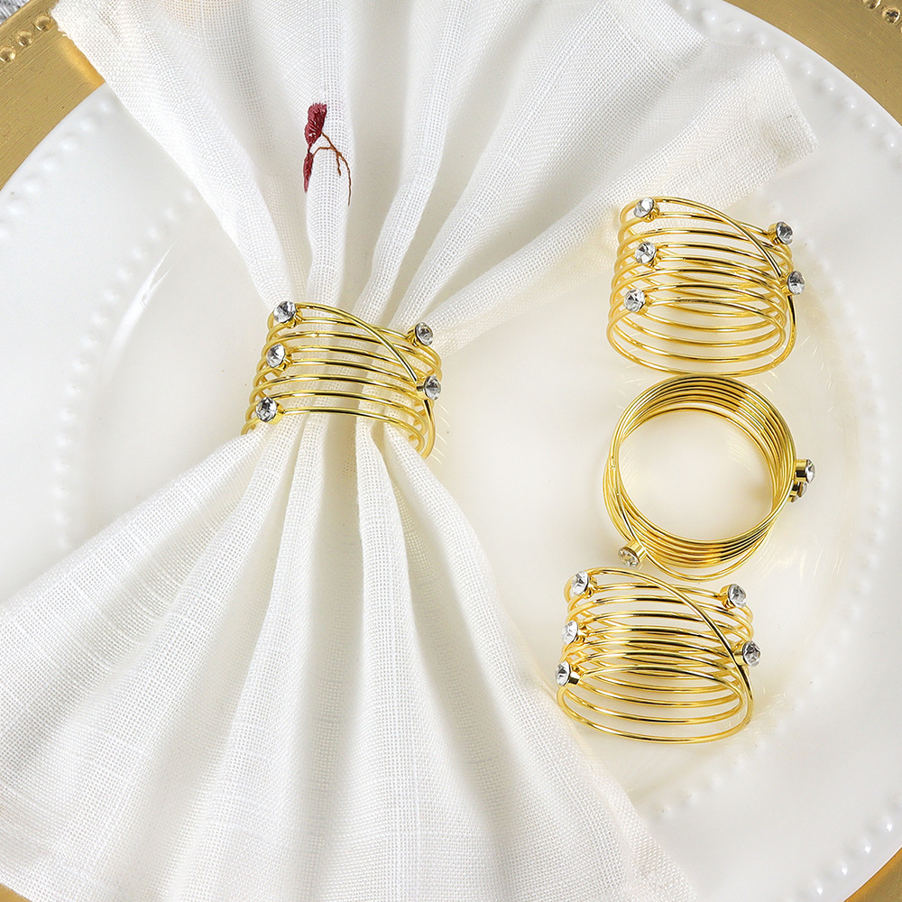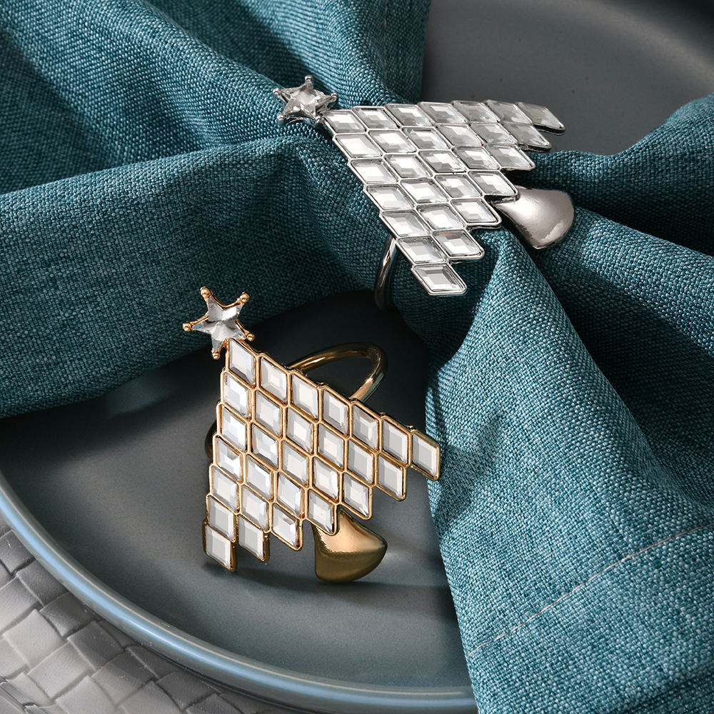 アマゾンの創意水晶にクリスマスツリーのナプキンリングを入れて、ホテルの宴会にクリスマスの金属メッキのナプキンを並べます。