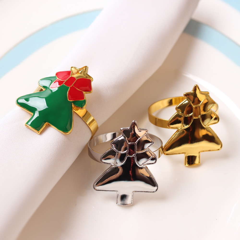 国境を越えたアイデアの新しい彩色は、クリスマスツリーのナプキンリングホテルのレストランに金属メッキのナプキンを並べています