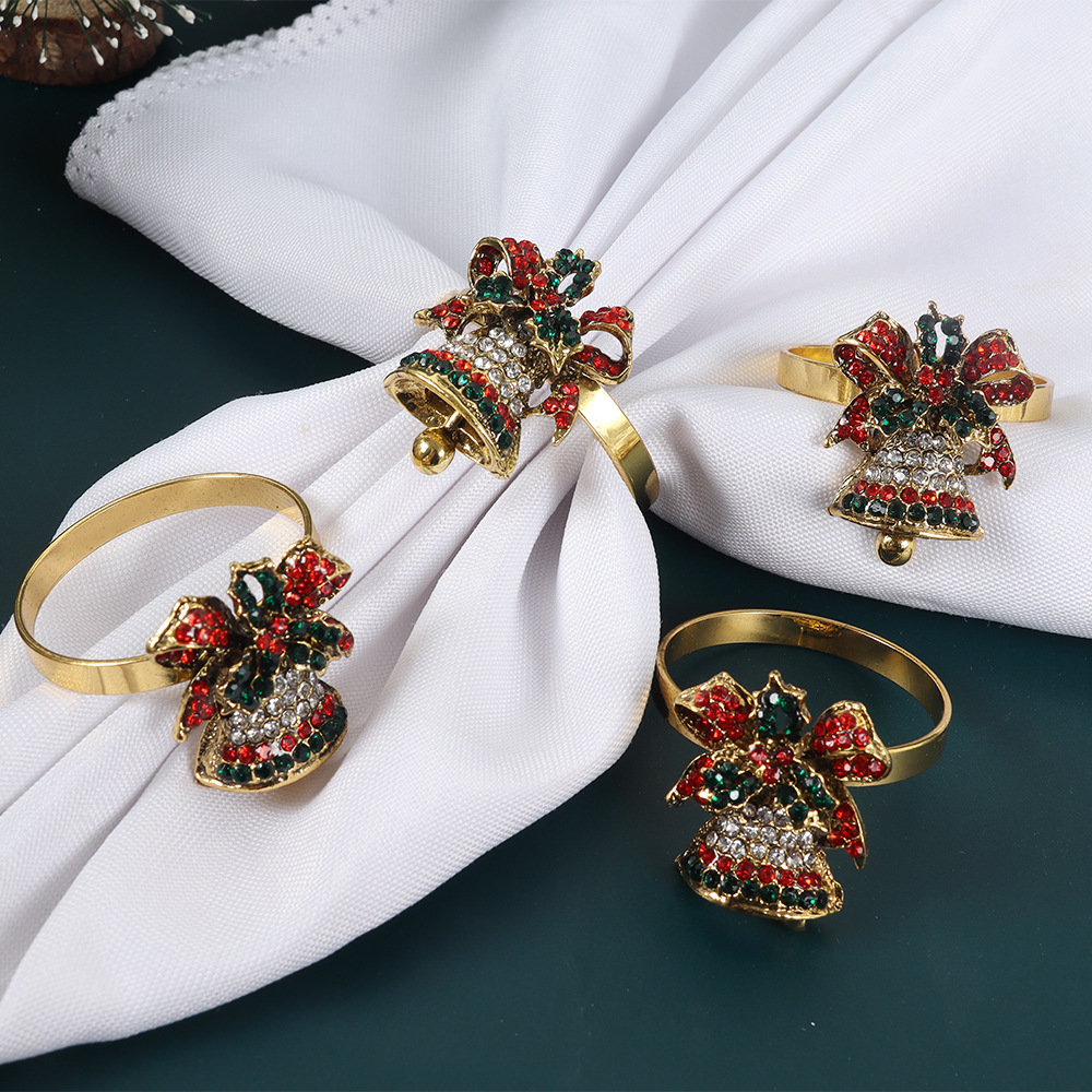 クリスマスの油の鈴のナプキンのリングの祝日の金属の電気めっきの絵の鈴のホテルのレストランの置物のメーカーの卸売り