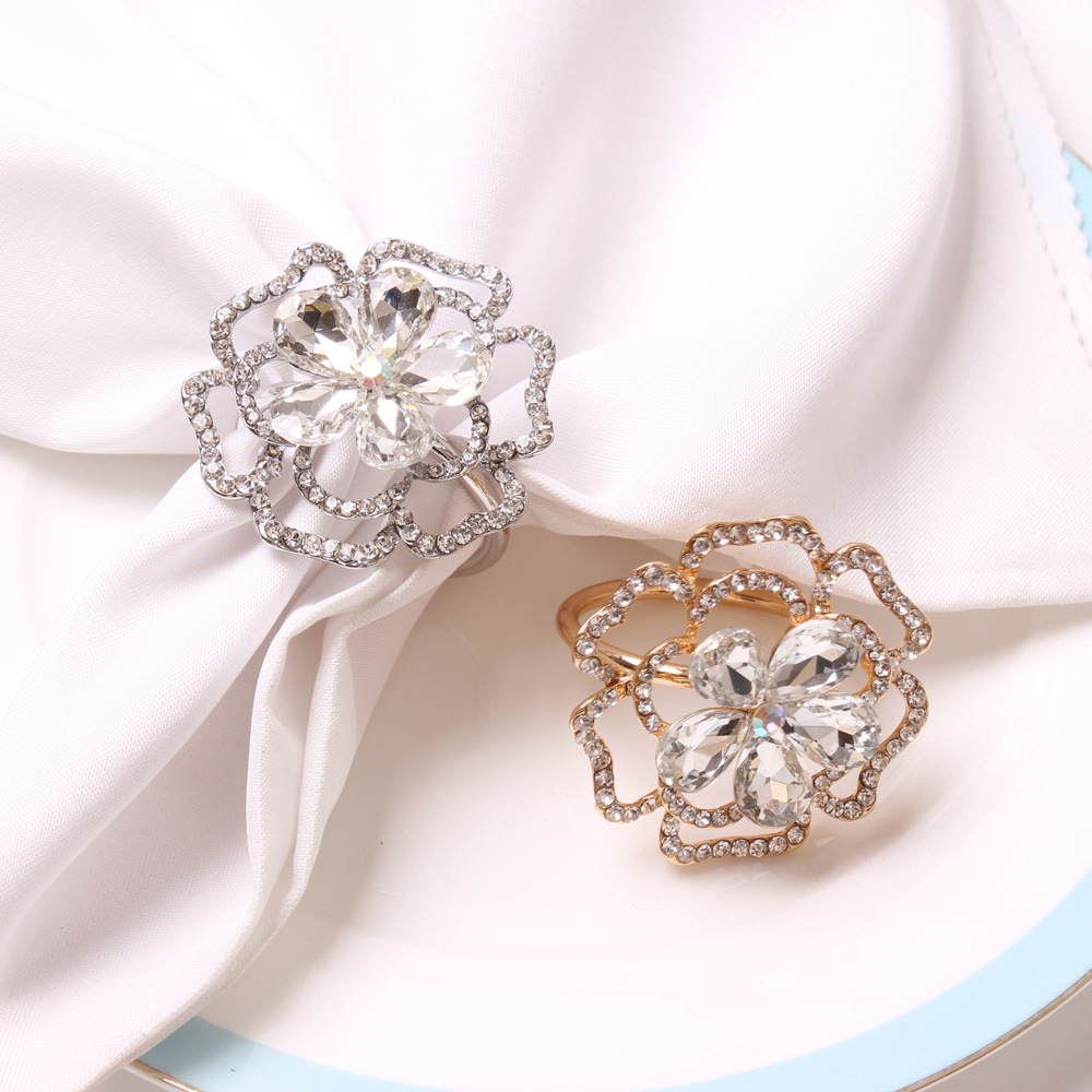 アマゾンの熱い販売の滴の油の彩色の四つ葉の草のナプキンの環の創意のホテルは台の銀色のナプキンのボタンのメーカーを並べて卸売りします。