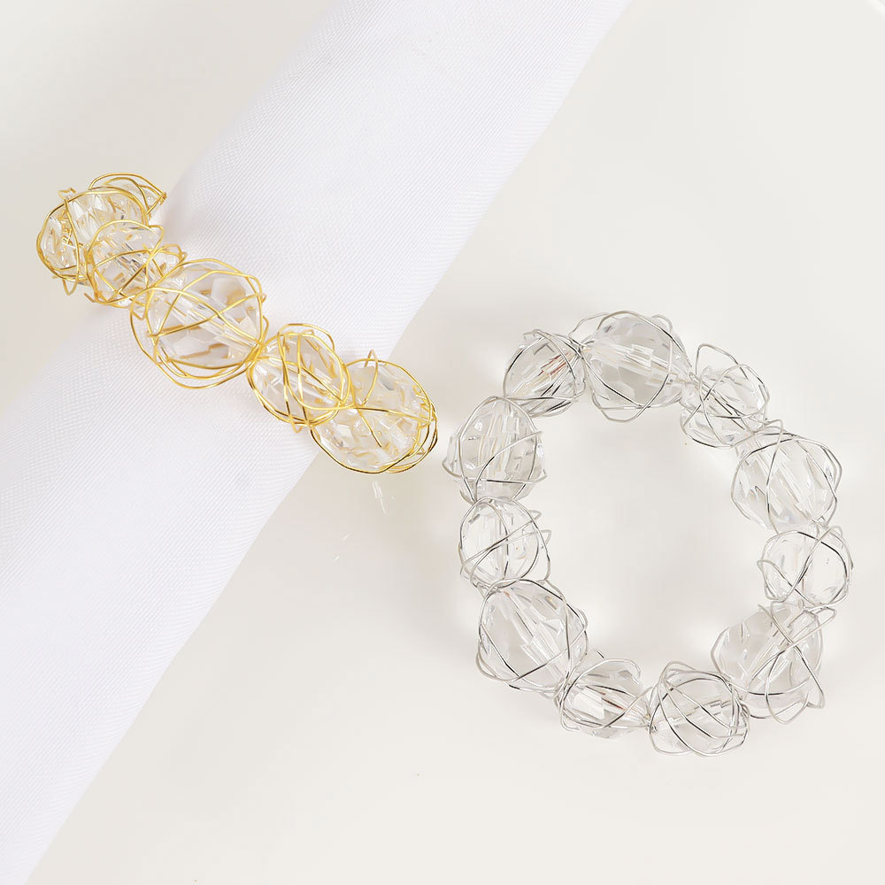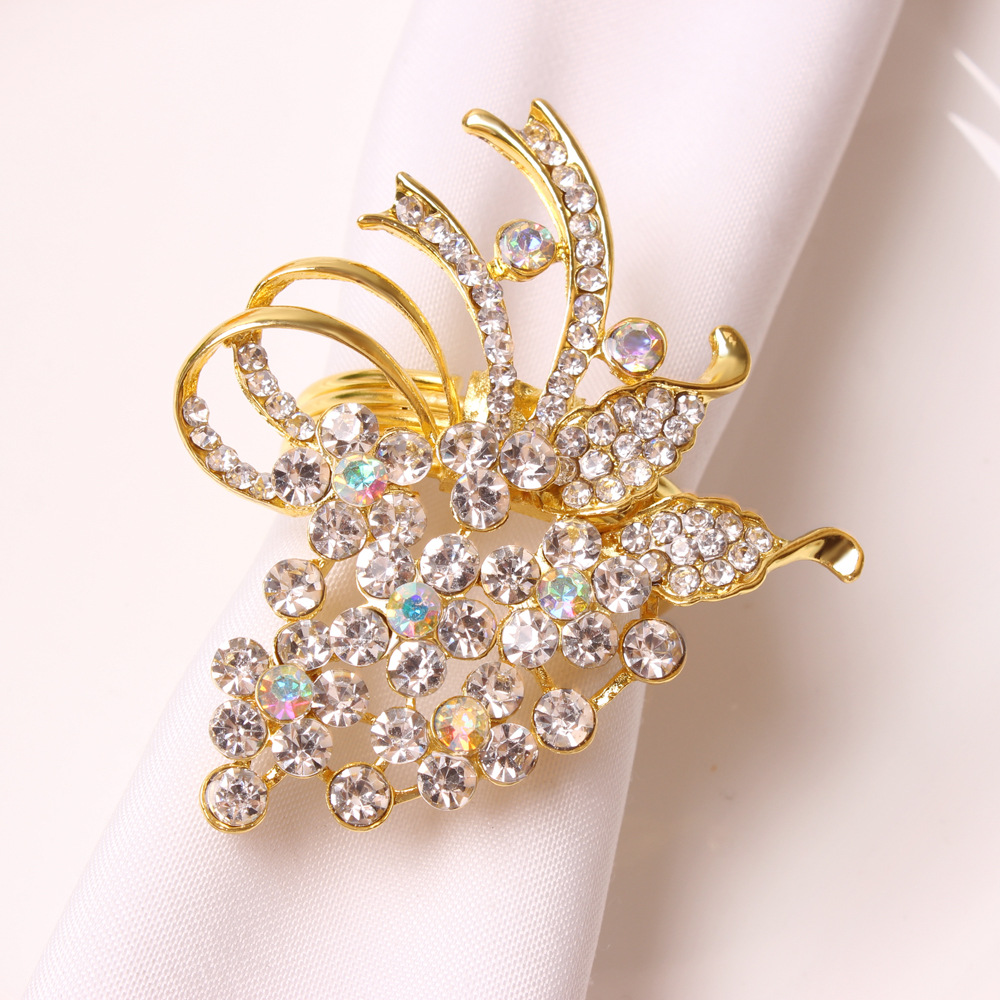 国境を越えた金属巻き水晶編みナプキンホテルの結婚式の宴会に電気メッキナプキンメーカー卸売りを置く