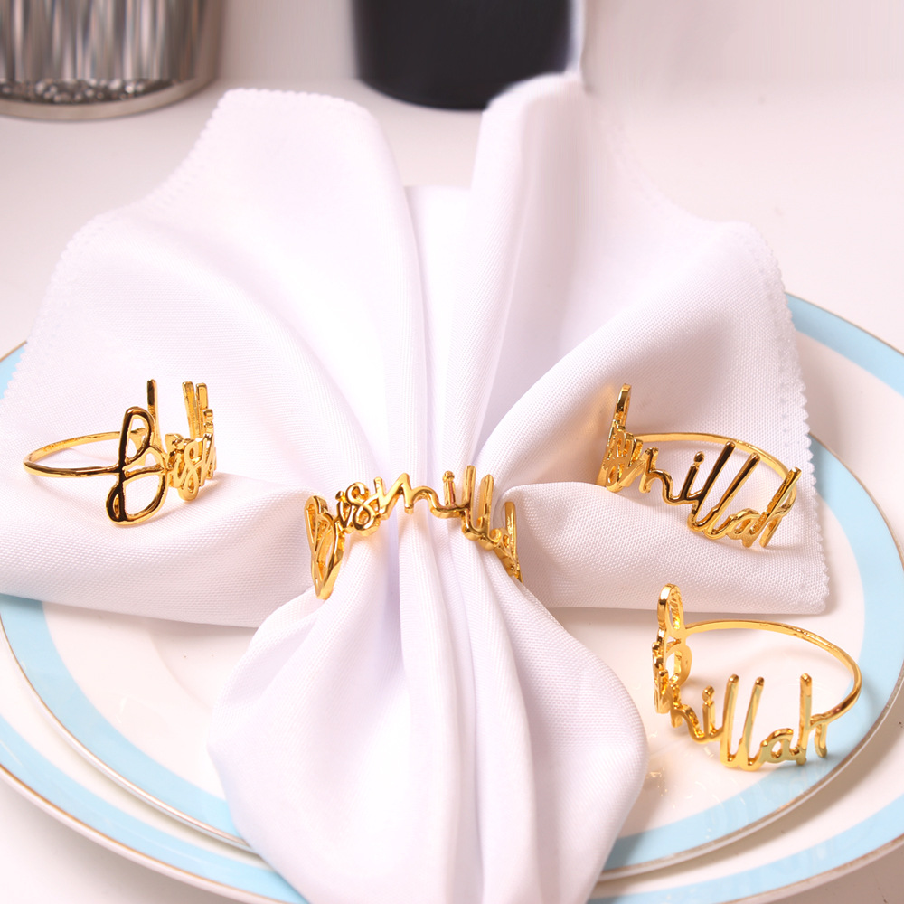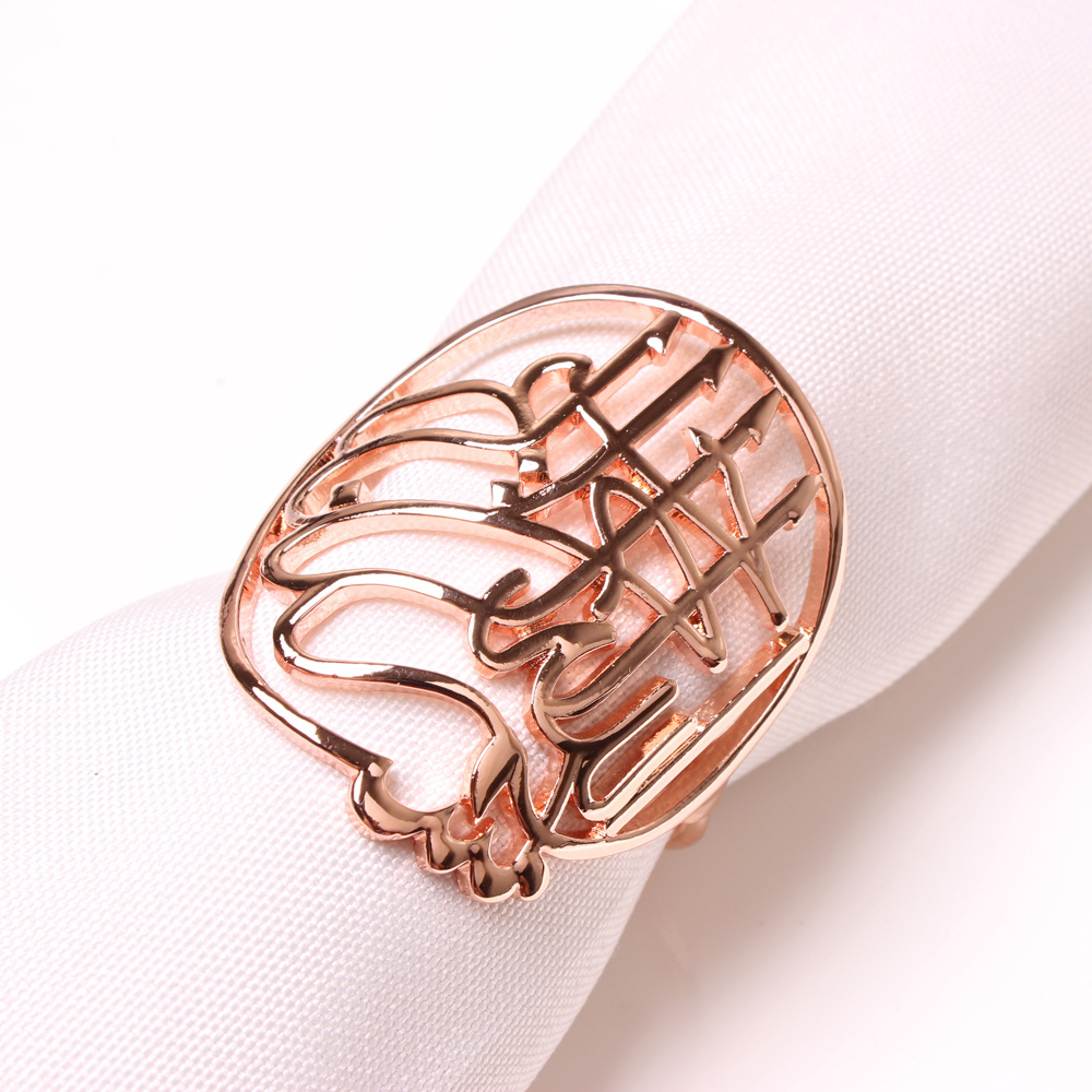 中東の祝日の電気めっきのナプキンは西洋のレストランを掛けて、透かし彫りの創意のアラビア語の祝福のナプキンの環のアマゾンを並べます。
