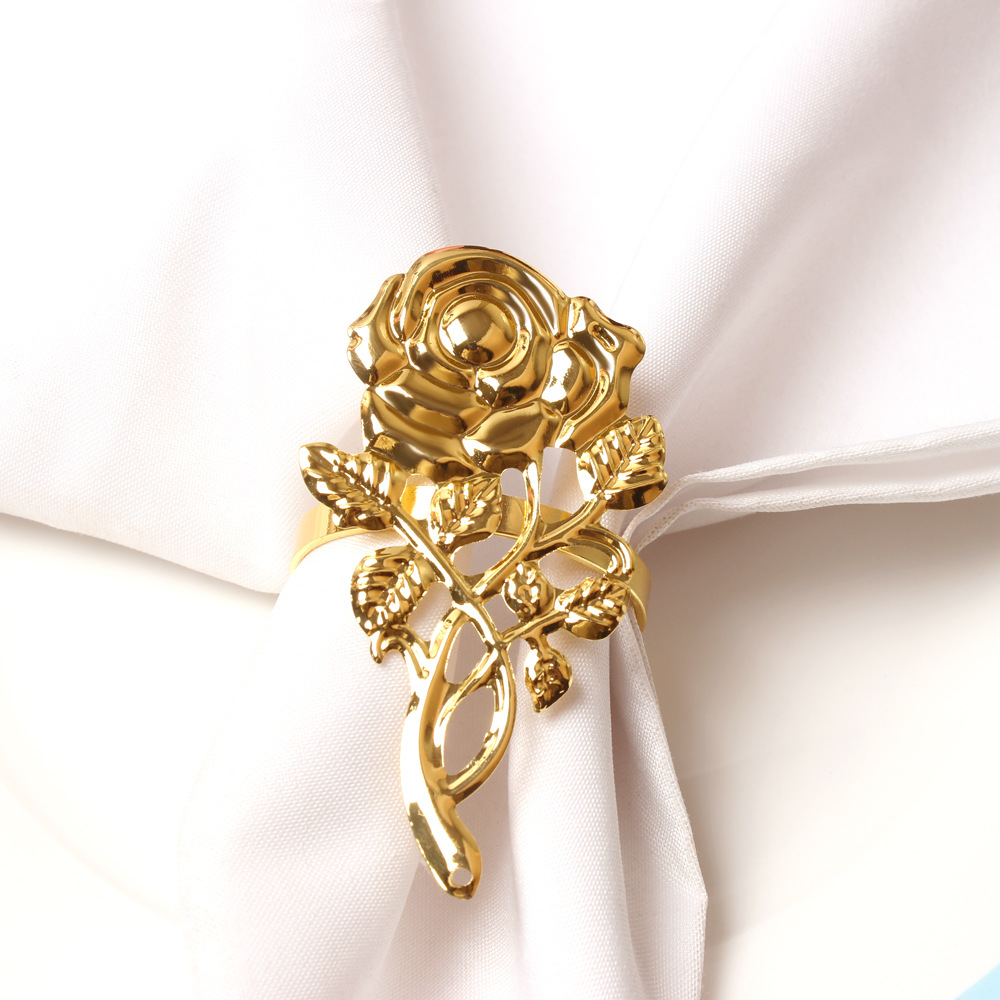 欧米の創意的な金色のバレンタインデーのバラのナプキンリング金属メッキホテルのレストランの宴会はテーブルのナプキンを並べます。
