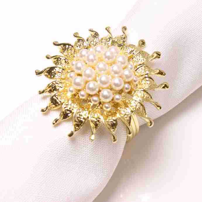 国境を越えた新しい真珠花盤ナプキンリングホテルの振り子金属メッキ太陽花ナプキンボタン宴会ナプキンリング