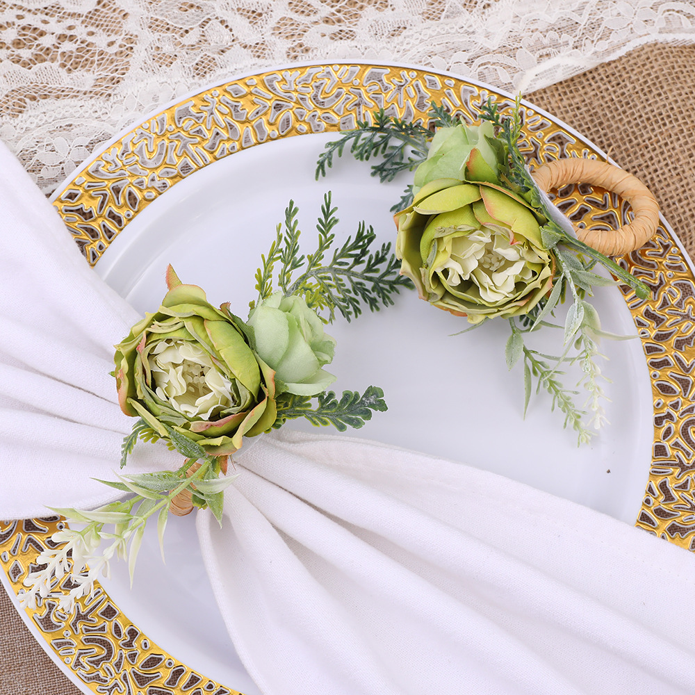 手作りのシミュレーショングリーン植物のナプキンリングホテルのテーブル掛けのナプキンはレストランの装飾のナプキンリングを掛けて卸売りします。