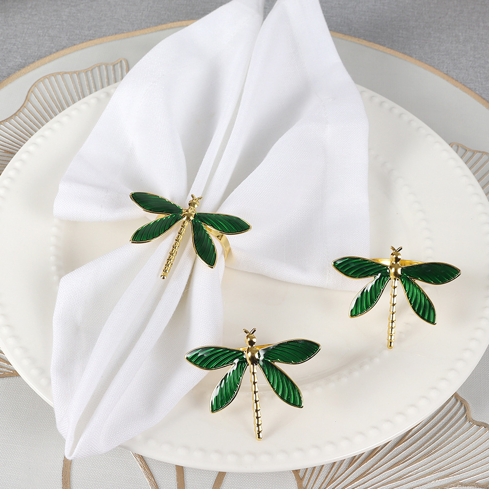 国境を越えた新しいグリーン滴油トンボナプキンリング金属メッキ洋式レストランのテーブルナプキンメーカー卸売り