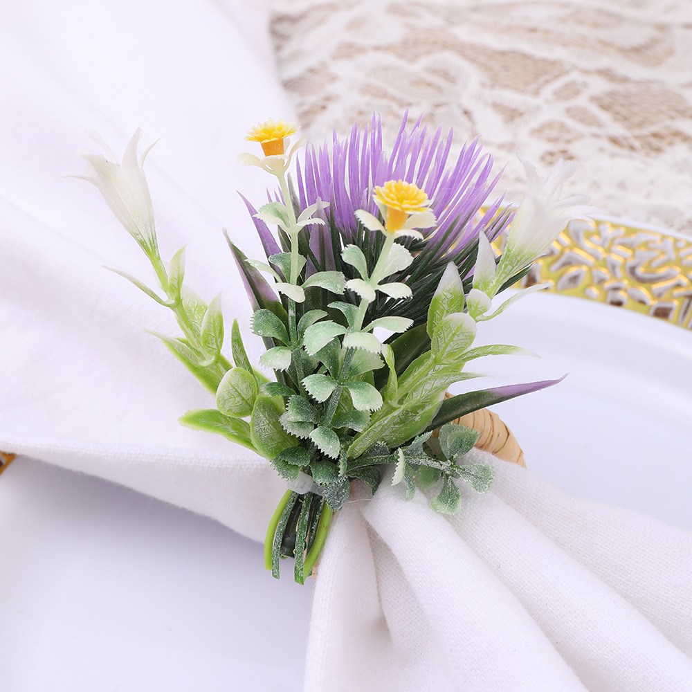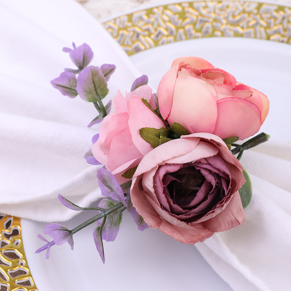 洋食店の創意的な手作りの紫色のシミュレーション花のナプキンリングホテルの置物バレンタインデーの装飾ナプキンのボタン