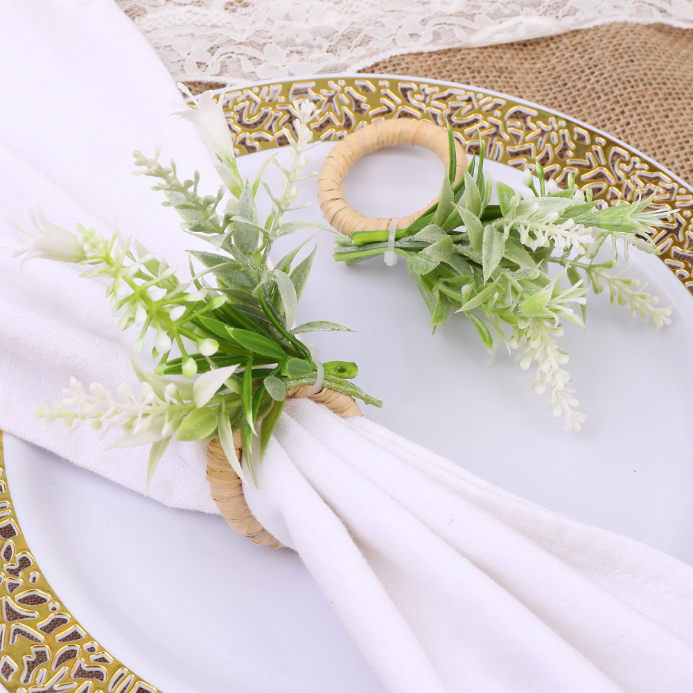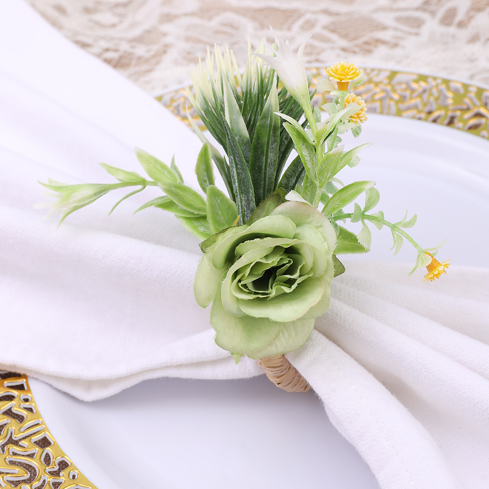 創意新型手編みグリーン植物ナプキンリングホテル置物洋式結婚式飾りナプキンバックル卸売り