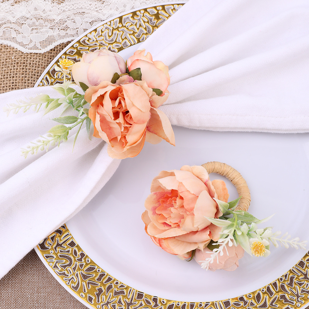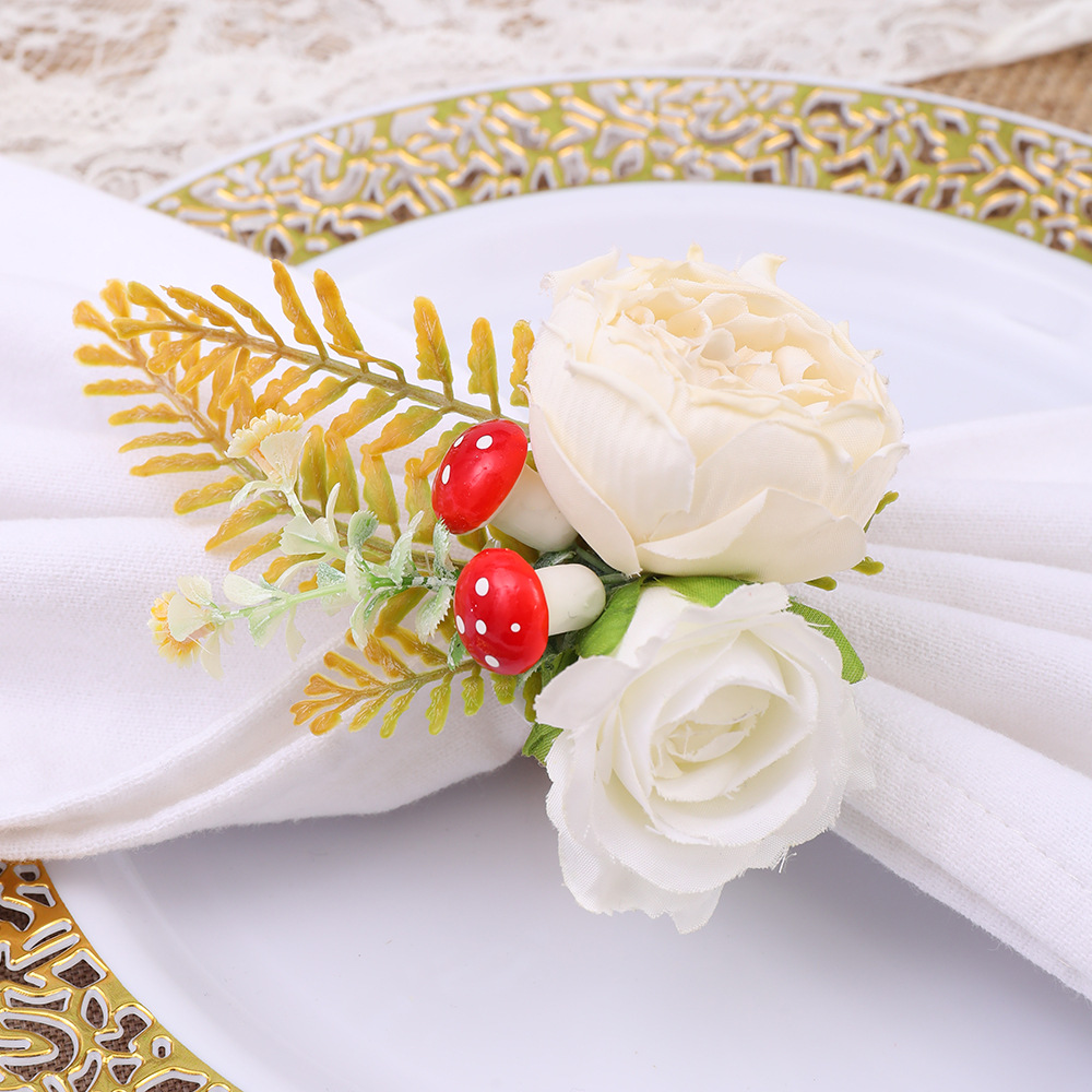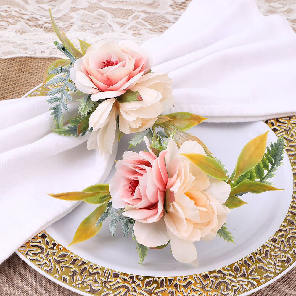 アマゾンの新しいシミュレーション花手作り布芸ナプキンリングホテルの置物レストランの結婚式のバラのナプキンリング