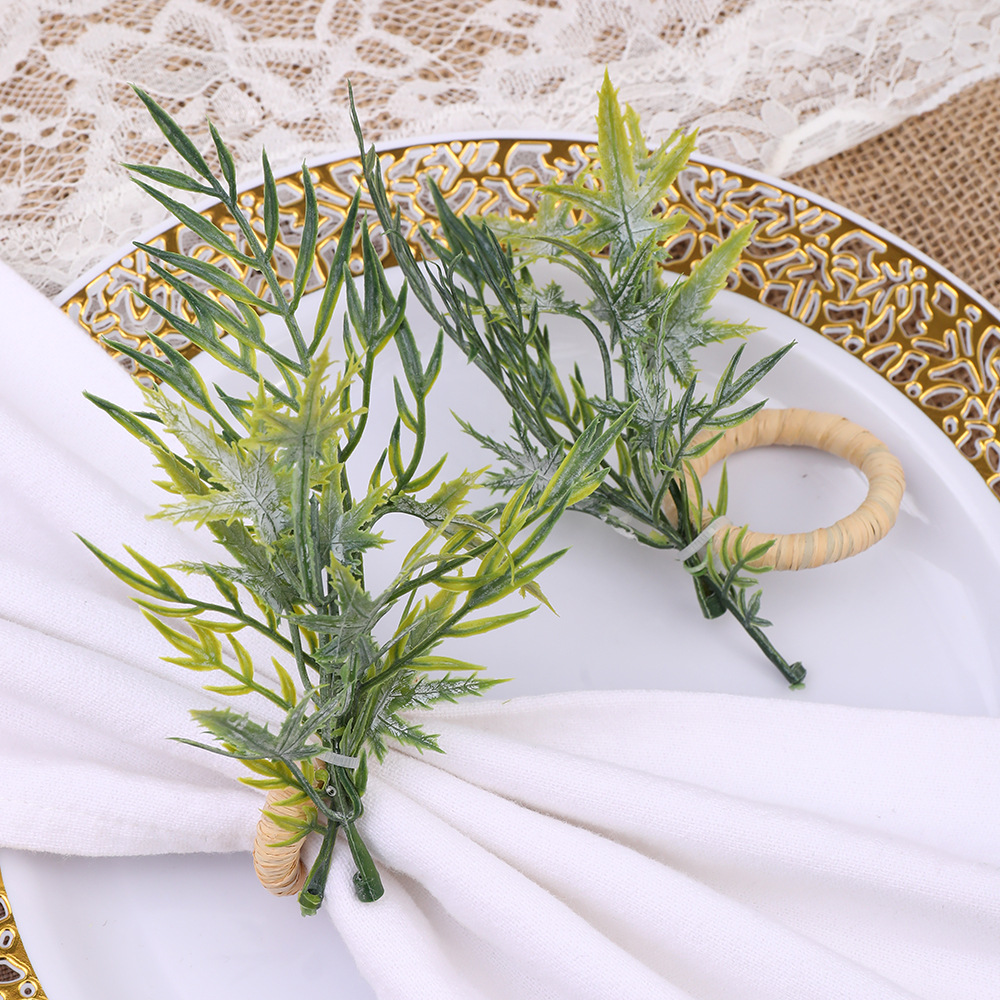 国境を越えた新型シミュレーショングリーン植物ナプキンリングホテルの布芸手織りナプキンの現物卸売り