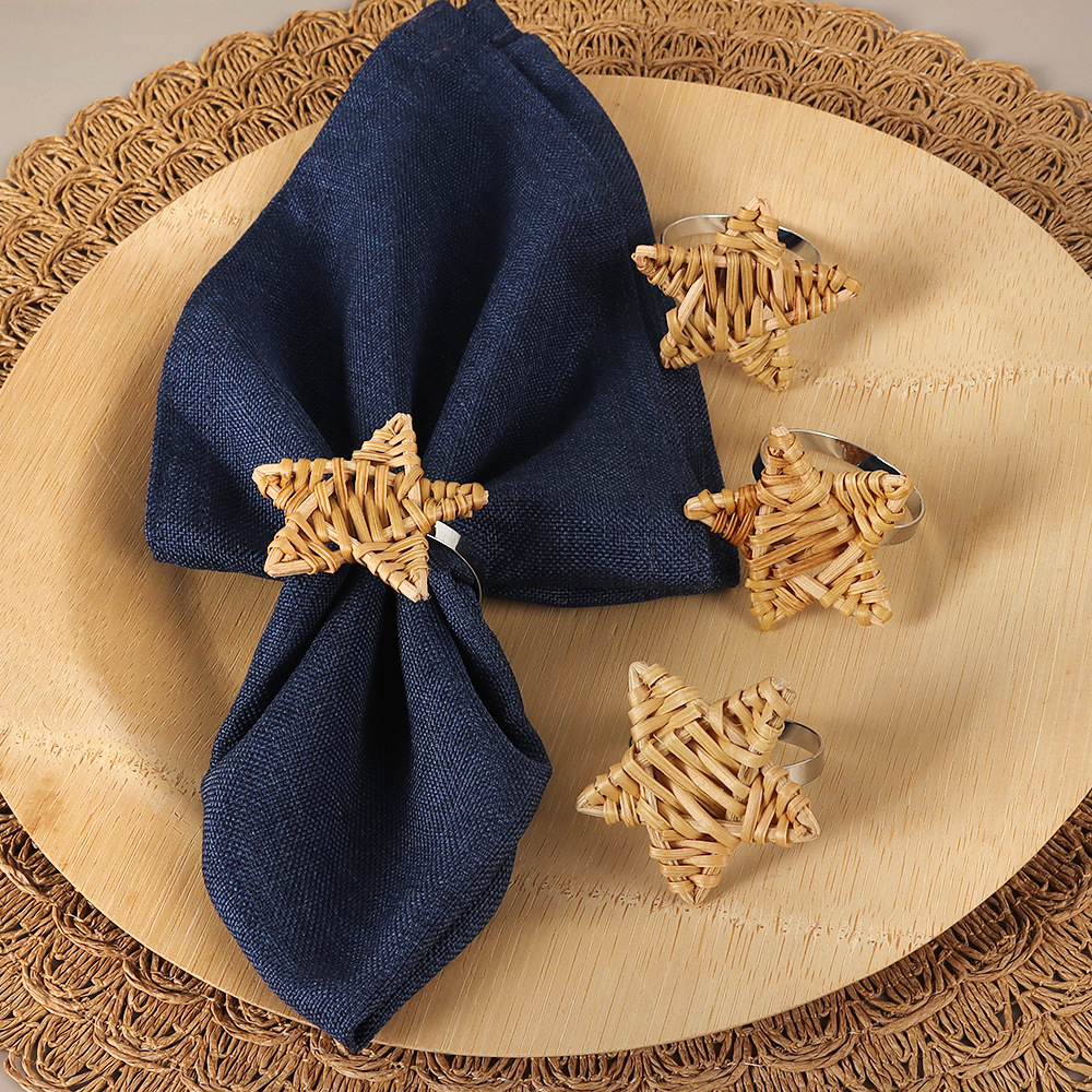 創意ホテルは台の手作りの藤条を並べて五角星のナプキンを編みます。