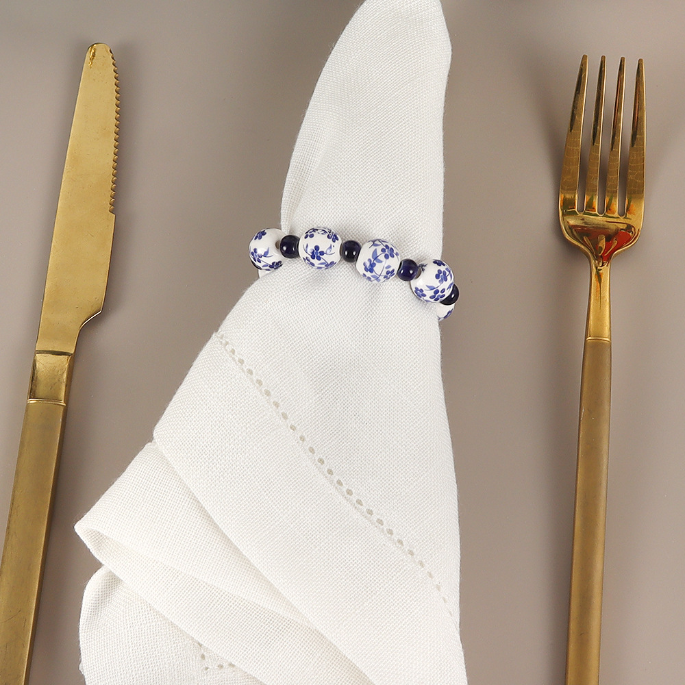 宮廷風手描き青花手串ビーズナプキン環ホテル置物創意レストランナプキンメーカー卸売り