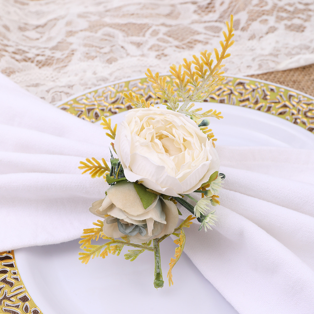 アマゾンの新型シミュレーションの白いバラのナプキンリングの手編みのナプキンはホテルの置物の卸売りを掛けます。