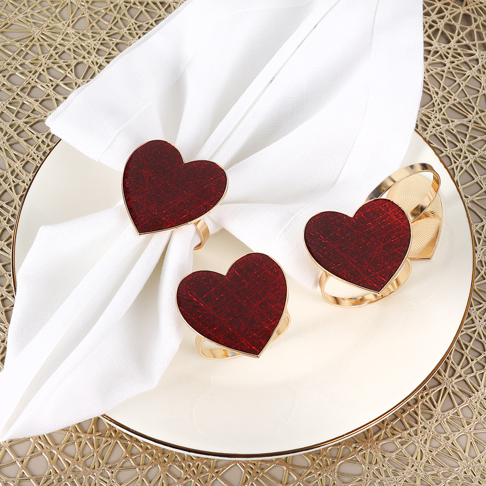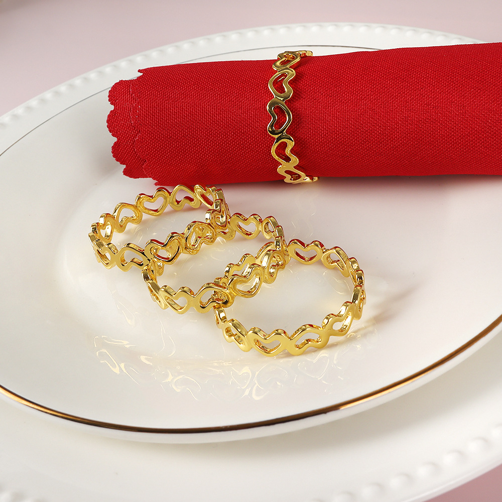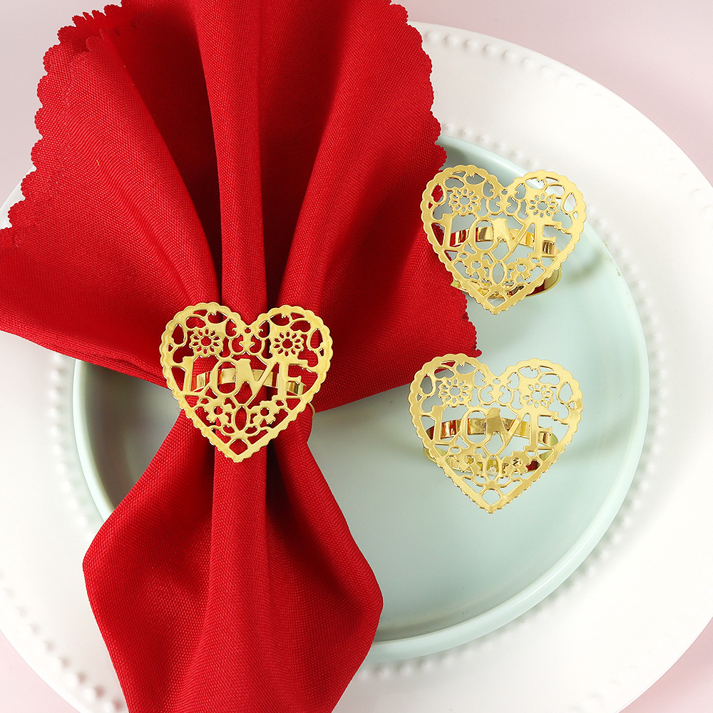 クロスボーダー新型洋式創意ホテル置物バレンタインデー透かし彫り愛ナプキンリング金属メッキメーカー卸売り