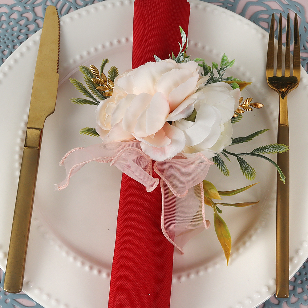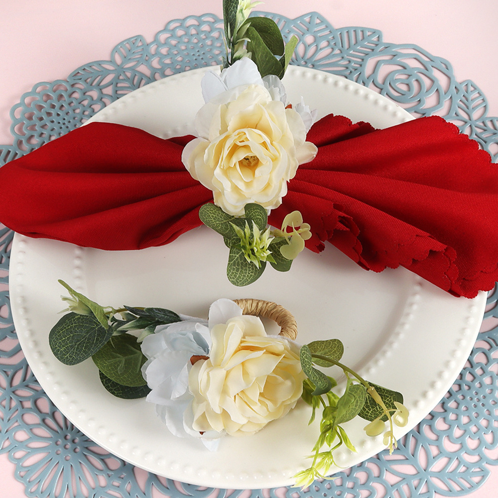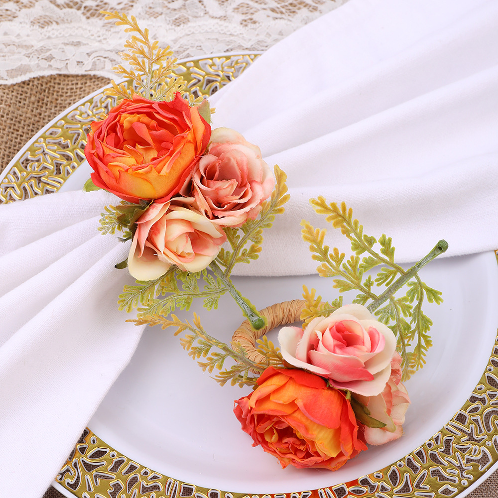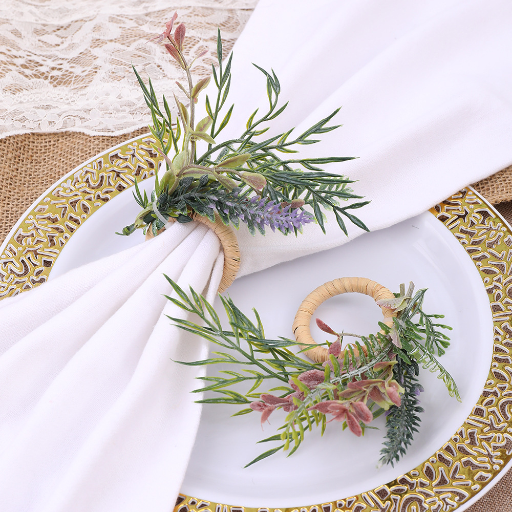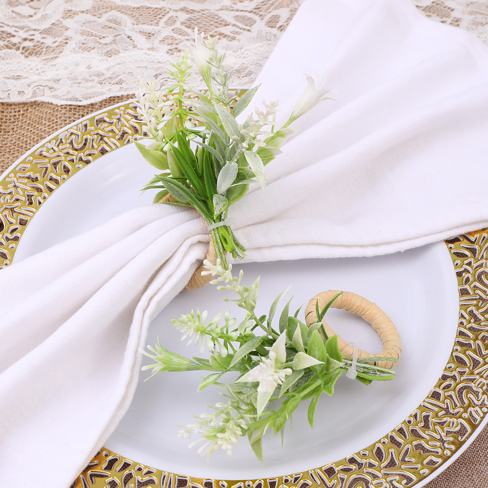 国境を越えた新しいホテルの置物台の手作りのシミュレーション植物のナプキンリングの洋式レストランのナプキンメーカーの卸売り