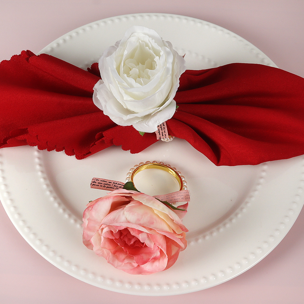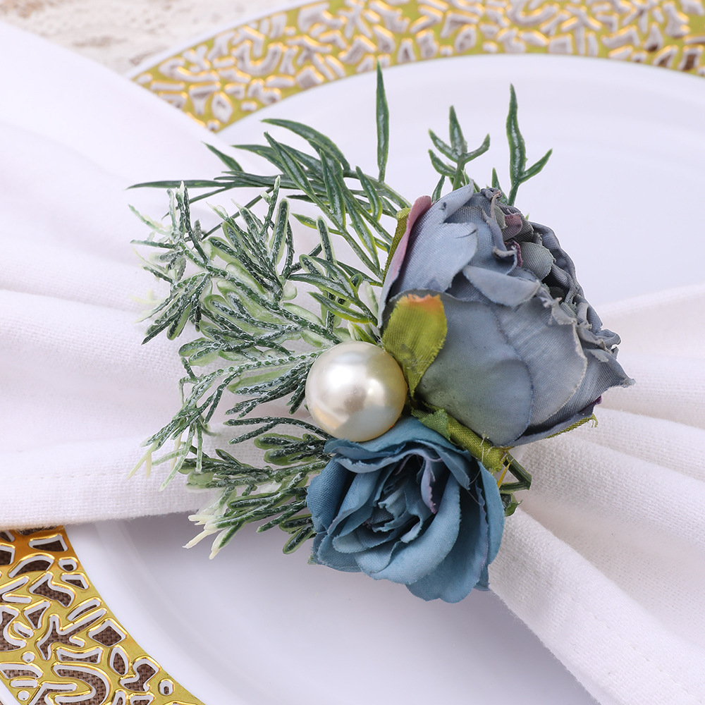 越境新商品創意布芸手織りシミュレーションブルー真珠バラのナプキンリング洋式レストラン置物