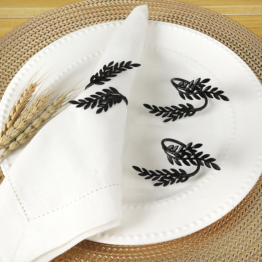 欧米の創意豊収節の新型の黒色の麦の穂の合金の電気めっきのナプキンの環の西のレストランはテーブルのティッシュを並べて卸売りを掛けます。