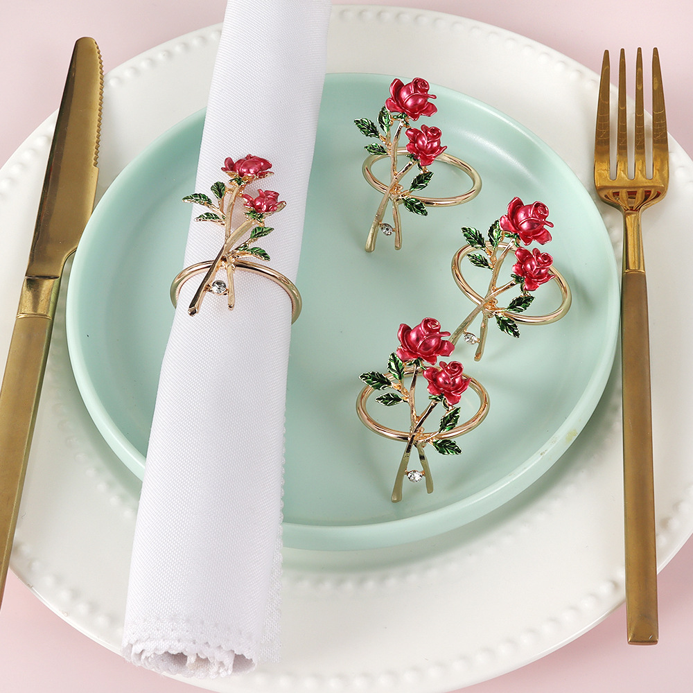 国境を越えた新しい滴油バラのナプキンリングホテルのバレンタインデーのレストランのテーブルのナプキンは合金のナプキンリングを掛けます。