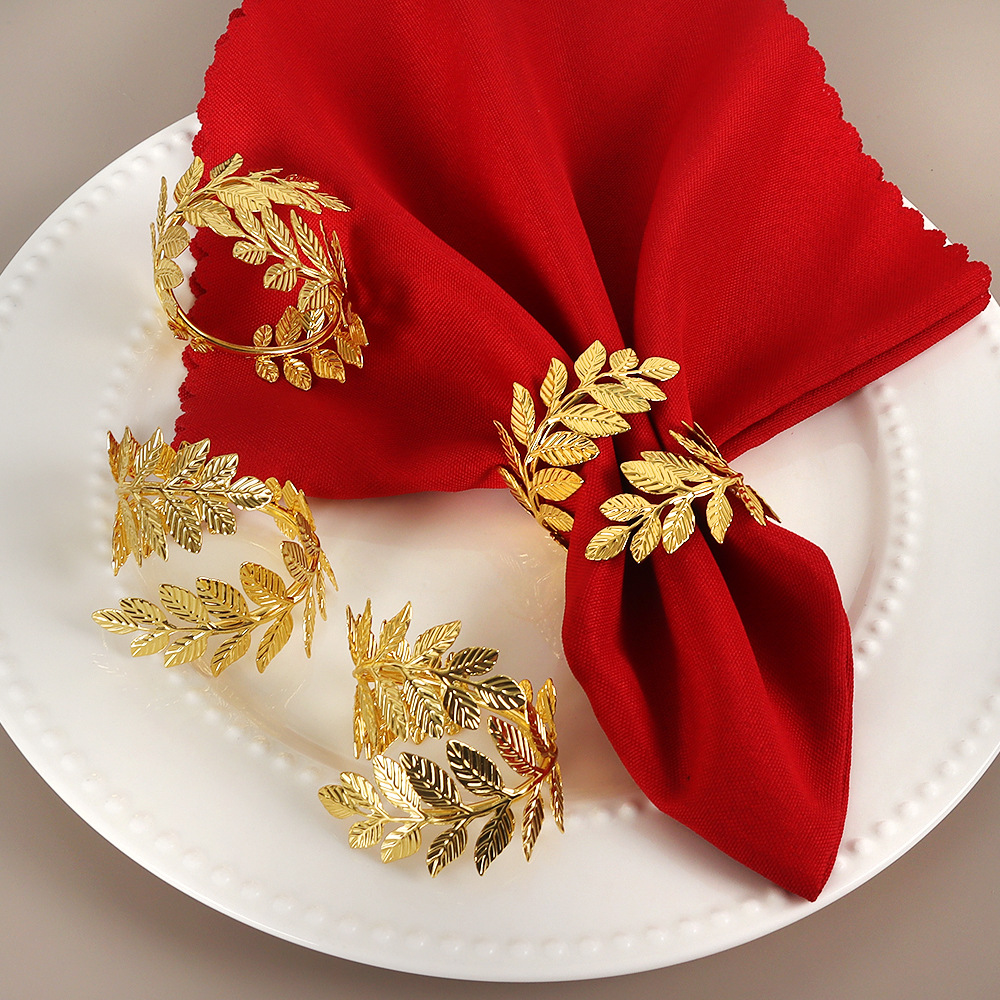 アマゾンの新型擬似木の葉のナプキンリング創意合金メッキ麦穂ナプキンはホテルのテーブルのナプキンリングを掛けます。